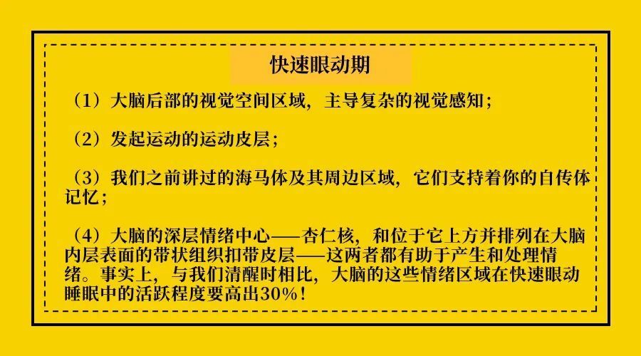 事实上,当我们开始在快速眼动睡眠中做梦时,大脑中有四个主要模块的活动会加剧: