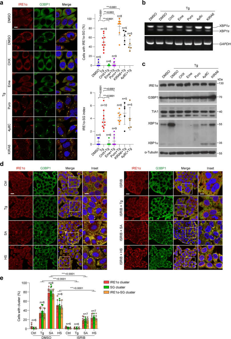 图 2. Effects of small-molecule protein translation, IRE1α Kinase/RNase or ISR inhibitors upon IRE1α-SG clusters[13]
