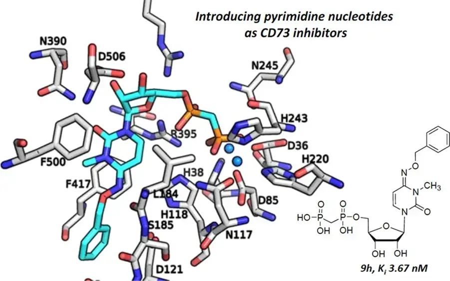 [1] A. Junker, C. Renn, C. Dobelmann, et al., Structure-Activity Relationship of Purine and Pyrimidine Nucleotides as Ecto-5'-Nucleotidase (CD73) Inhibitors, J Med Chem 62(7) (2019) 3677-3695.