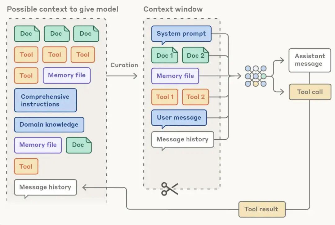 除了固定的系统提示词部分,外部知识的获取与记忆会最大化影响整个窗口,因此对于它们俩的设计与优化便是上下文工程的重中之重。
