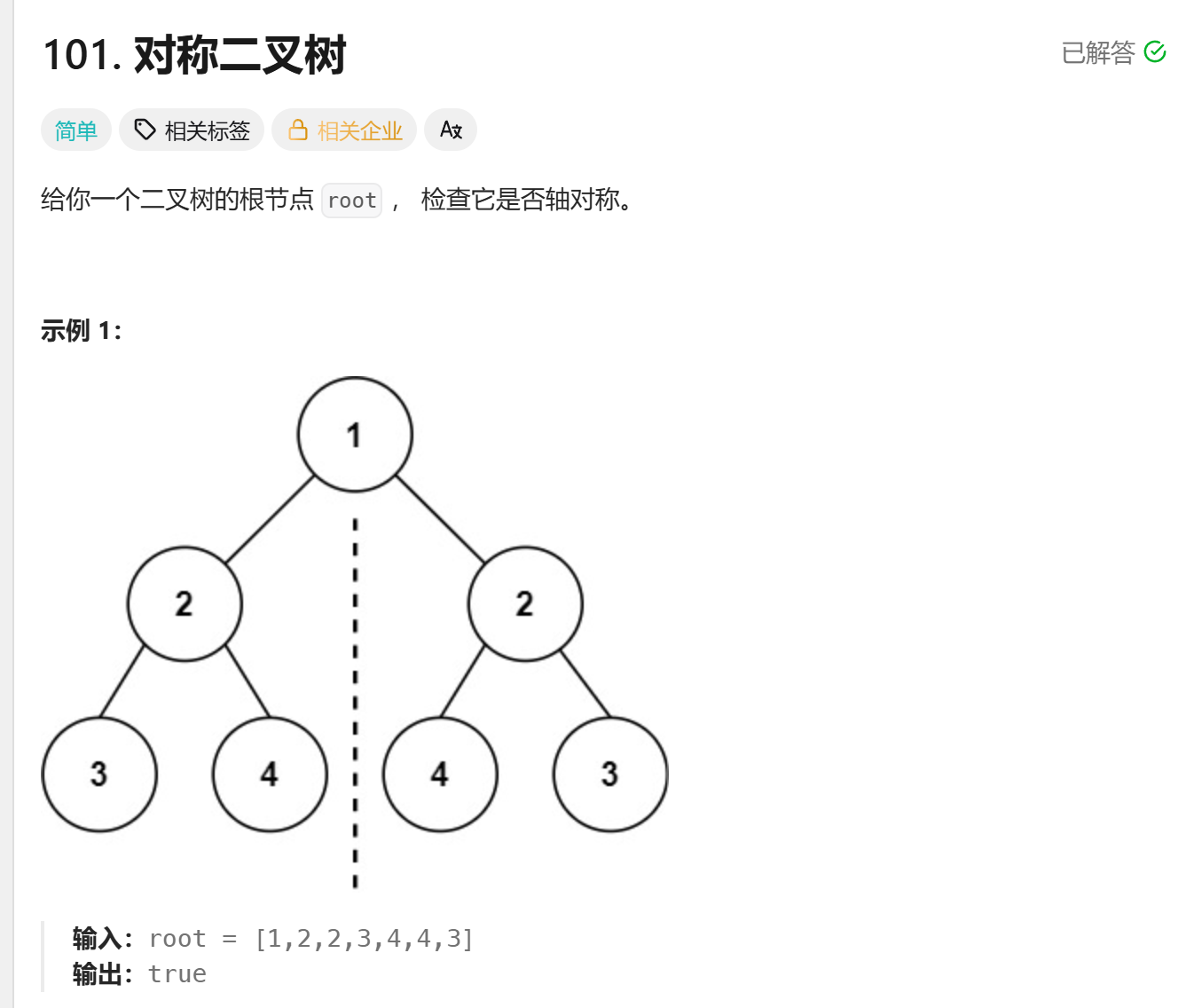 bool isSymmetric(struct TreeNode* root)