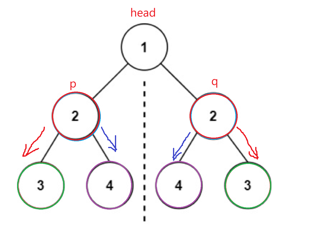 return isSameTree(p->left,q->right) && isSameTree(p->right,q->left);