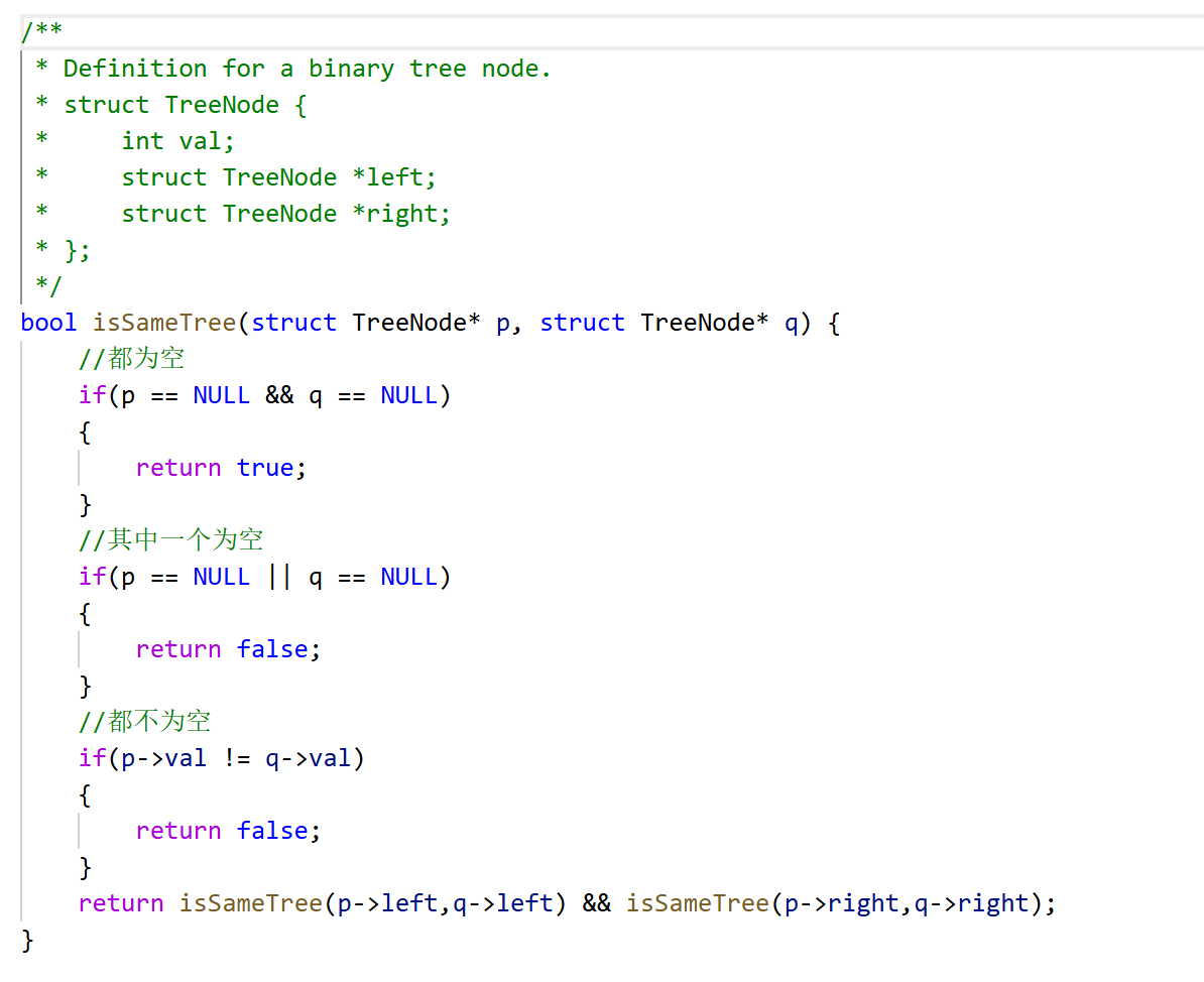 bool isSameTree(struct TreeNode* p,struct TreeNode* q)