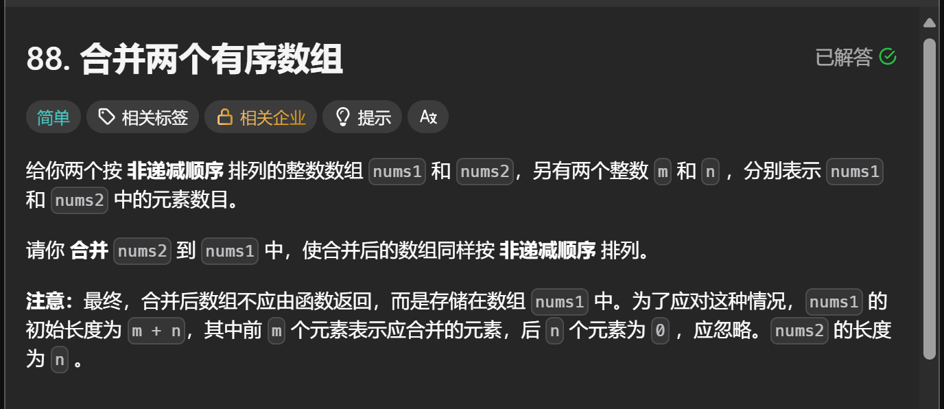 题解:用双指针解决移除元素问题且时间复杂度O(n)空间复杂度O(1) 题解:双指针求解删除有序数组中的重复项 题解:双指针求解合并两个有序数组(利用有序的特性)