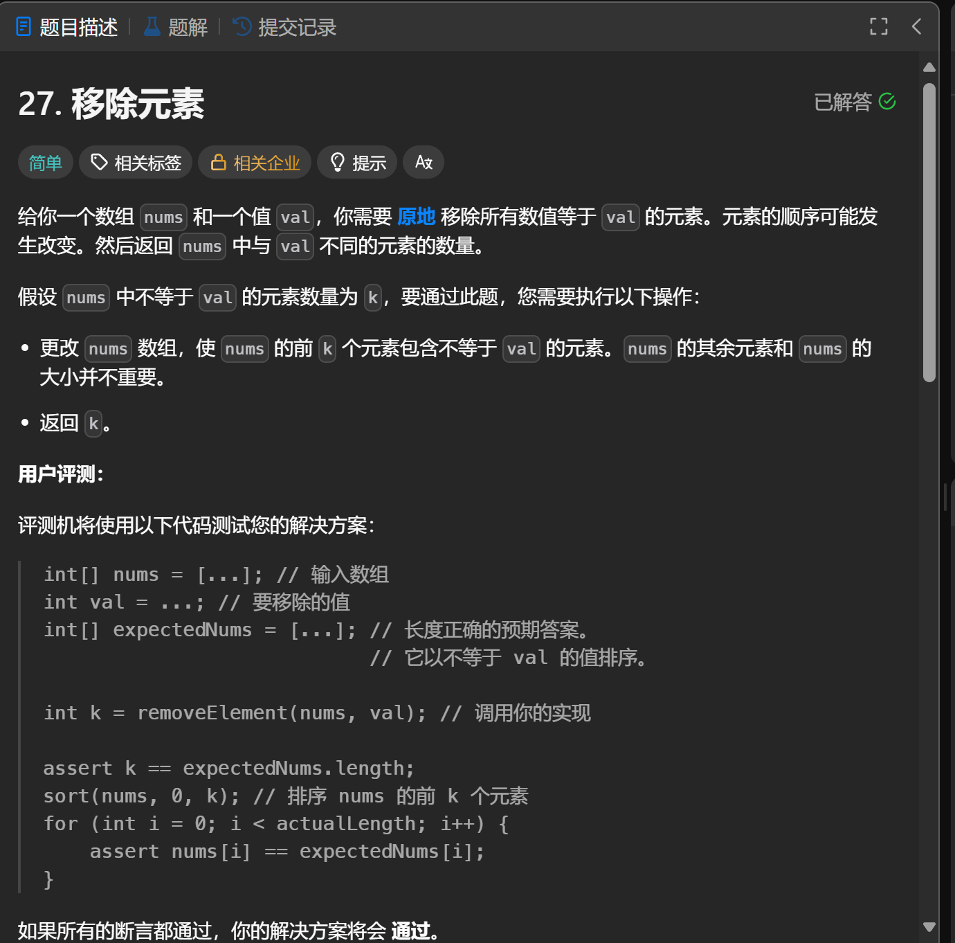}题解:用双指针解决移除元素问题且时间复杂度O(n)空间复杂度O(1)