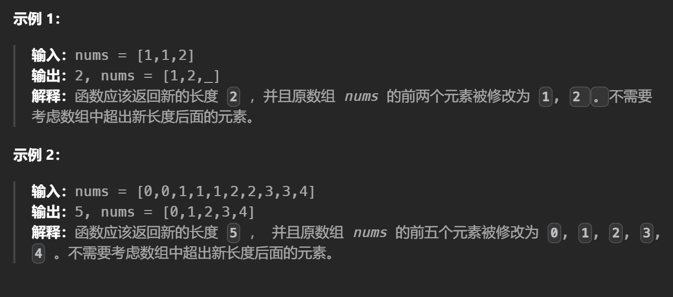 (二)删除有序数组中的重复项