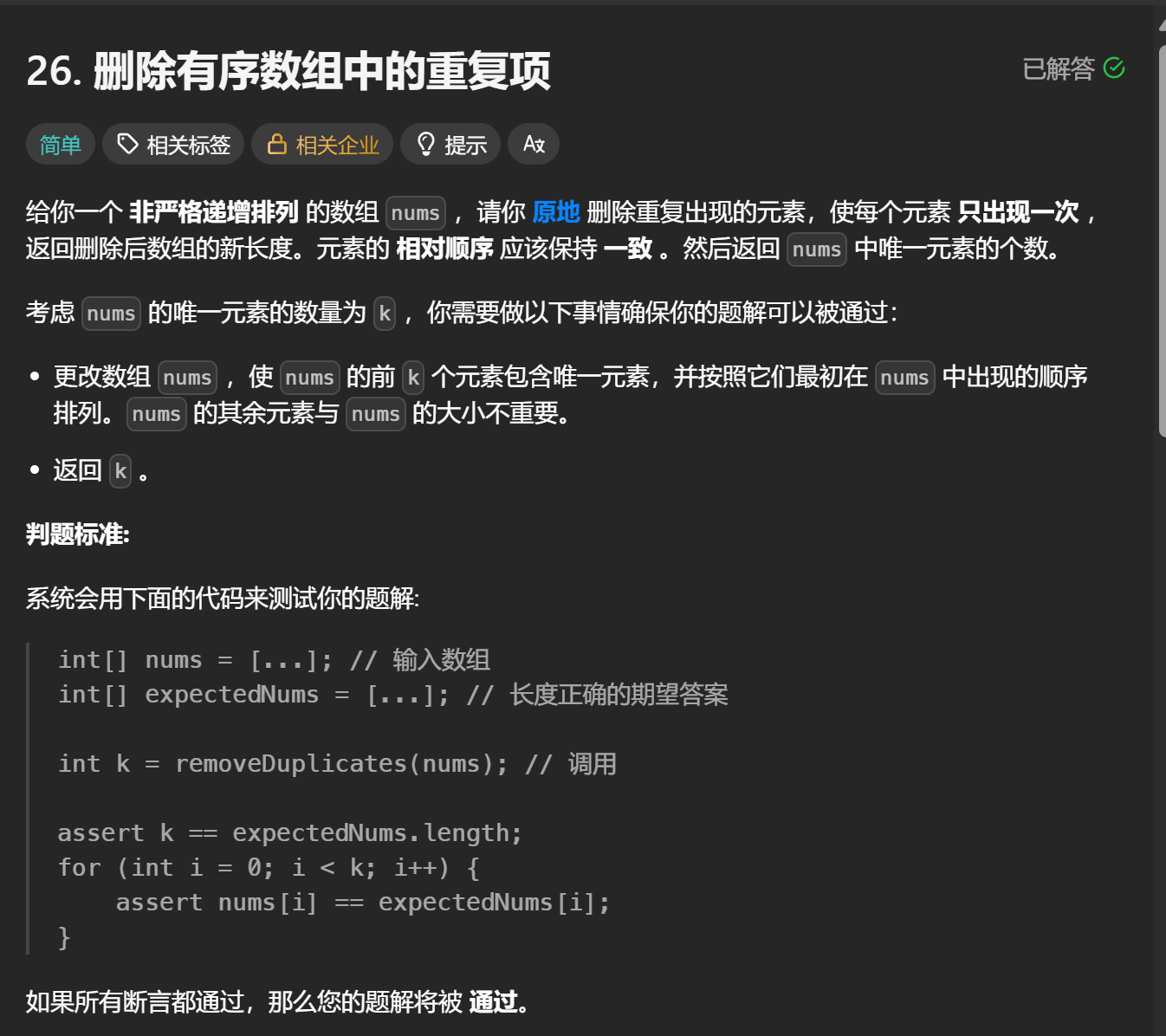 }题解:双指针求解删除有序数组中的重复项