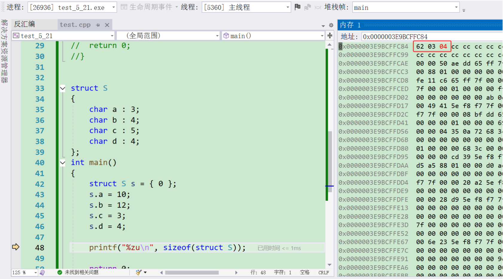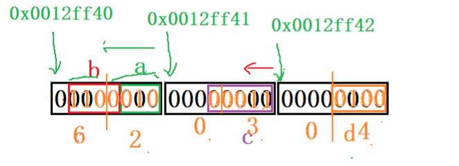 1、一个字节(整型)的内存中,到底是从左向右使用的,还是从右向左使用的,这点不确定 我们只能先假设从右向左使用(后面经验证,在VS上正确) 2、剩余的空间不能满足下一个成员的时候,是否造成空间浪费,也不确定(这里我们假设浪费,进后来验证,在VS上正确)