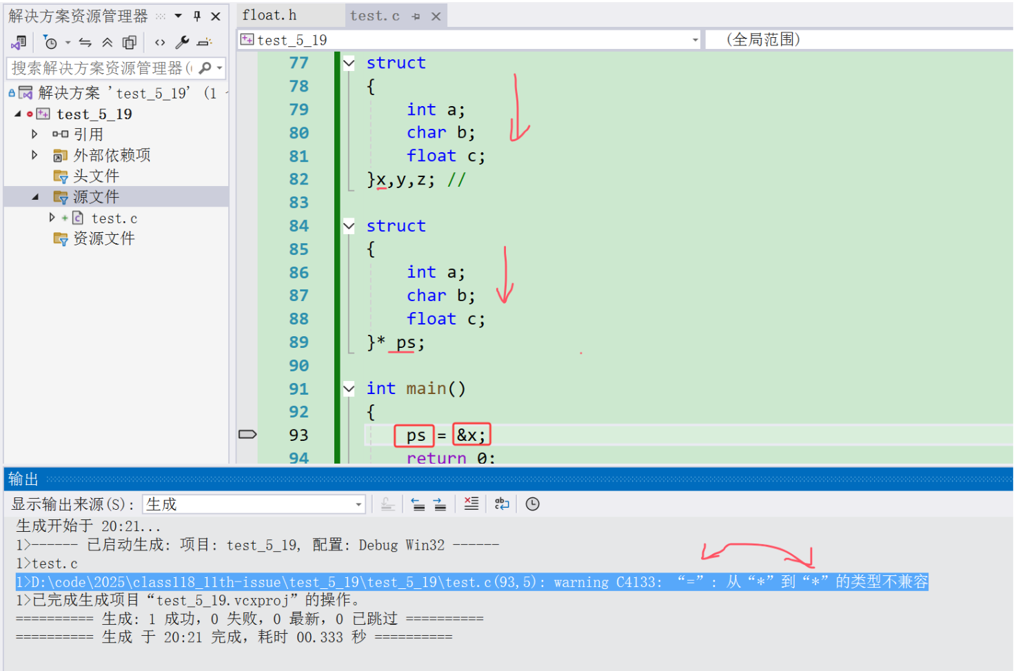 注意: 1、编译器会把上面的两个声明当成完全不同的两个类型,因此是非法的; 2、匿名的结构体类型,如果没有对结构体类型重命名的话,基本上只能用一次。