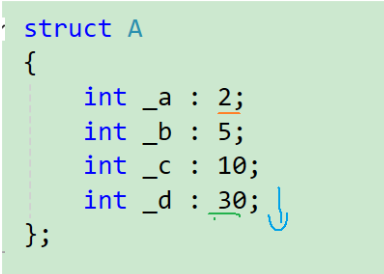 };这里的2、5、10、30表示这个成员要占用的比特位的数量,也就是说: