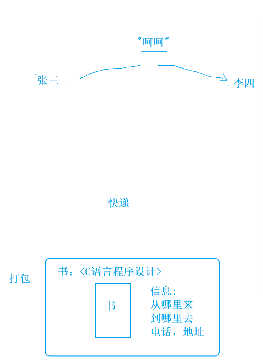 像网上和别人交流,实现数据的交互 ,比如张三给李四发了个“hehe”,就是这个道理;再比如,我们网上购物,快递也不是就给你发个商品,有打包、有各种信息,像电话号码、家庭地址、从哪来到哪去之类的: