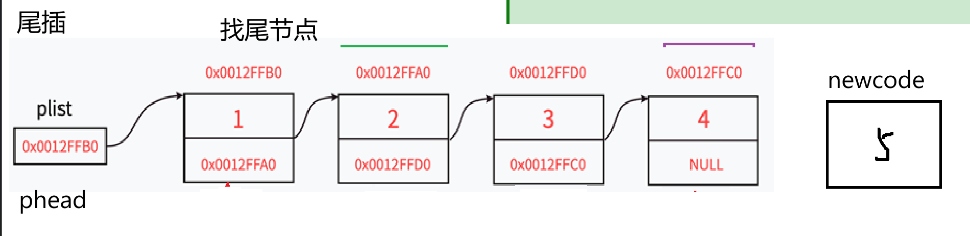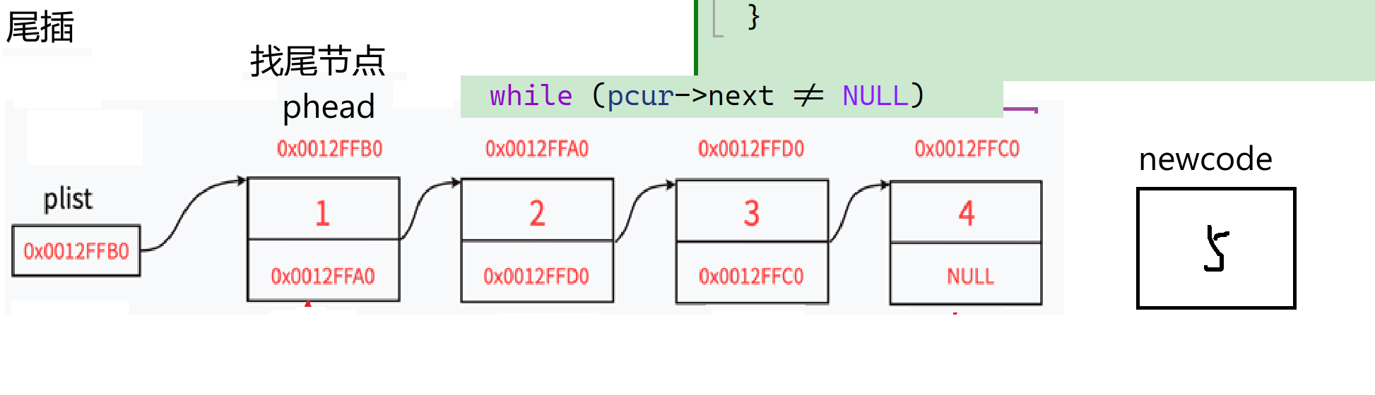 ptail->next = newnode;