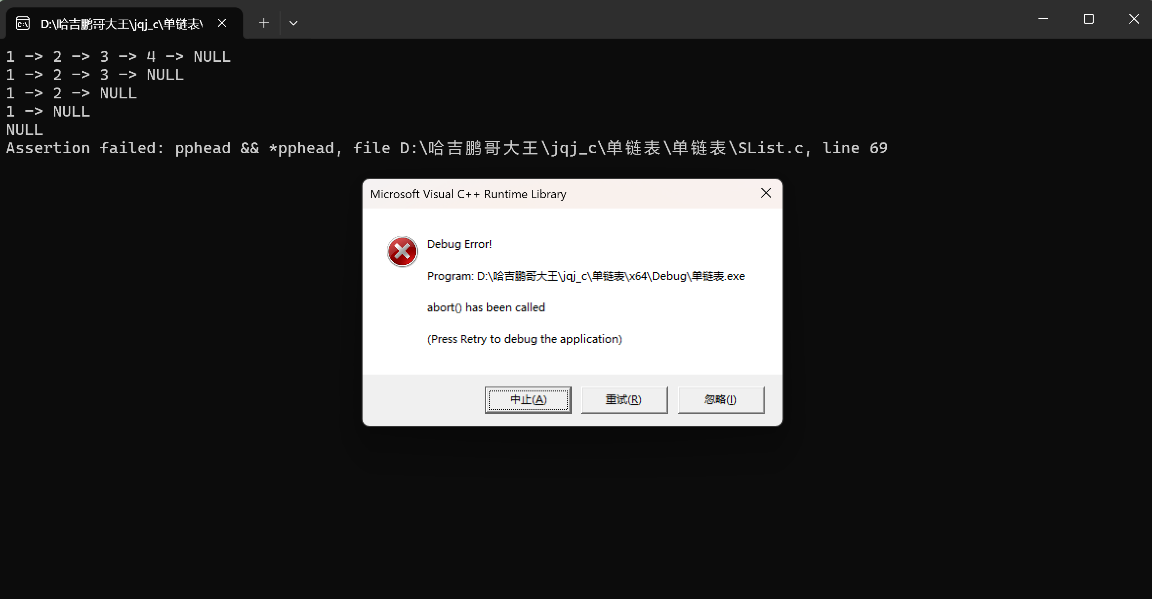 assert(pphead && *pphead);