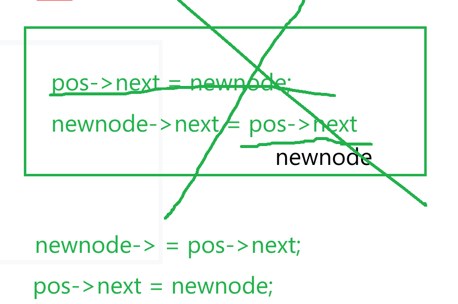 newNode->next = pre->next;//等价于newNode->next = pos