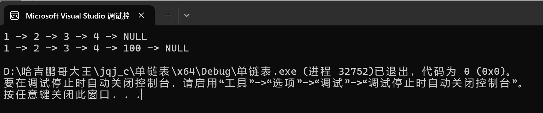 这样一来pcur在不断变化,phead保持不变,phead始终保存的是第一个节点的地址。在这里我不想改变phead,phead始终指向第一个节点,方便我们后面遍历完了如果还要再从头开始遍历的时候我们能够找到第一个节点的地址。
