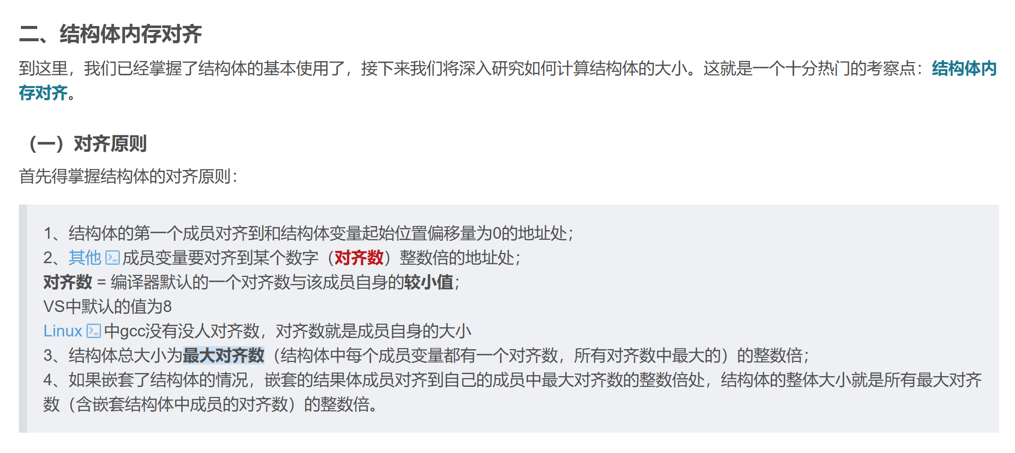 我们之前在C语言的结构体部分介绍过内存对齐的这一规则,链接如下——