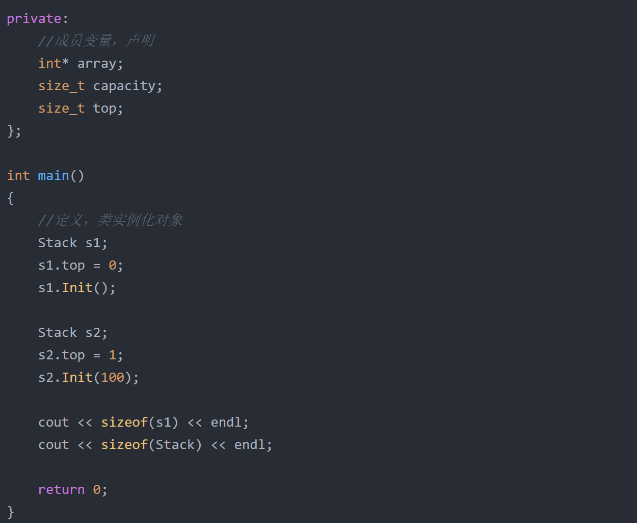 注:这些成员变量仅仅只是声明,并没有实际分配空间,只有在类实例化出对象时才会分配空间。
