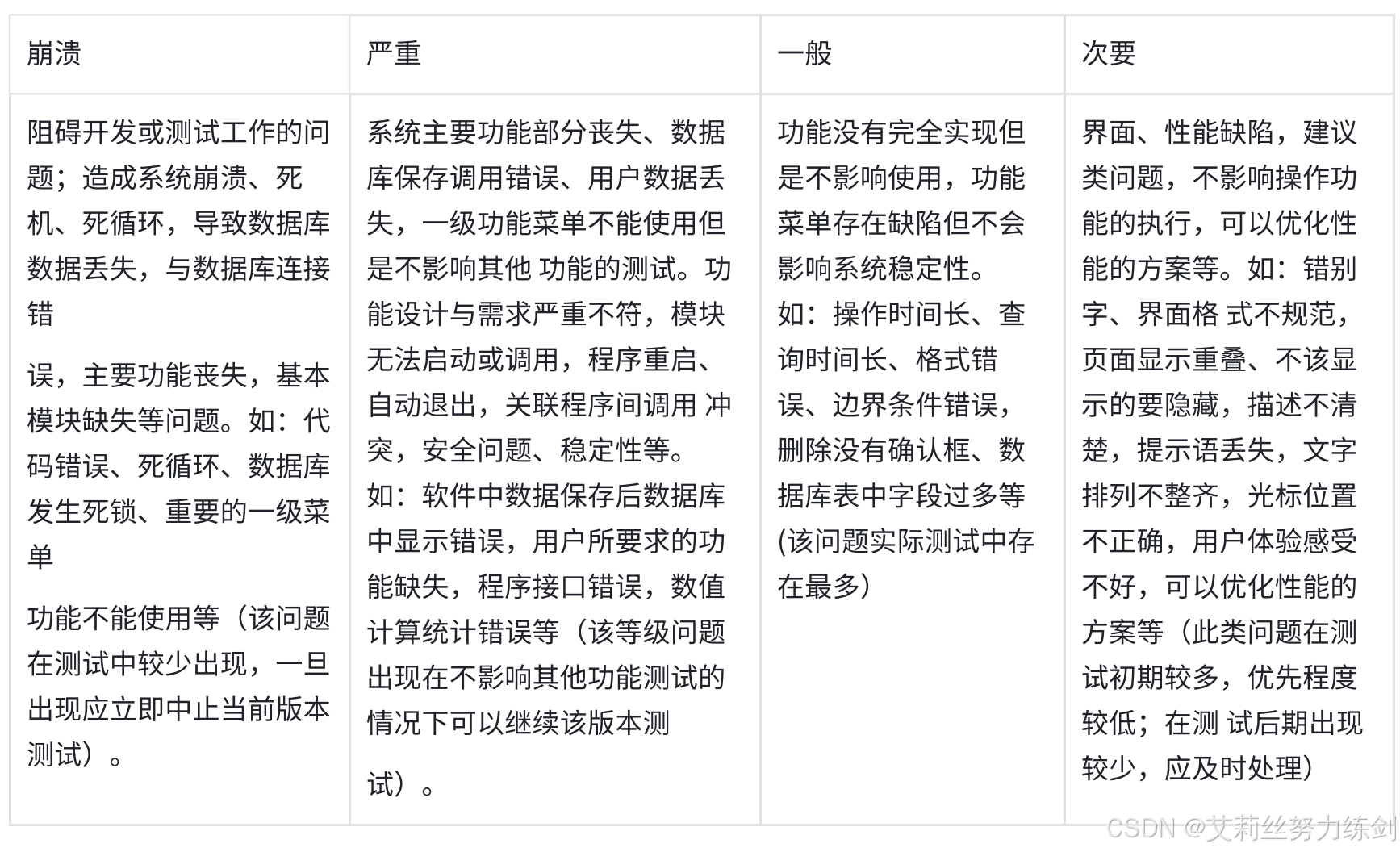 通过定义bug的级别,能够明确看出问题的严重程度。工作中开发人员通常需要按照bug的级别来分配优先级来处理bug,除此之外,通过bug级别也能够体现出开发人员的开发质量。