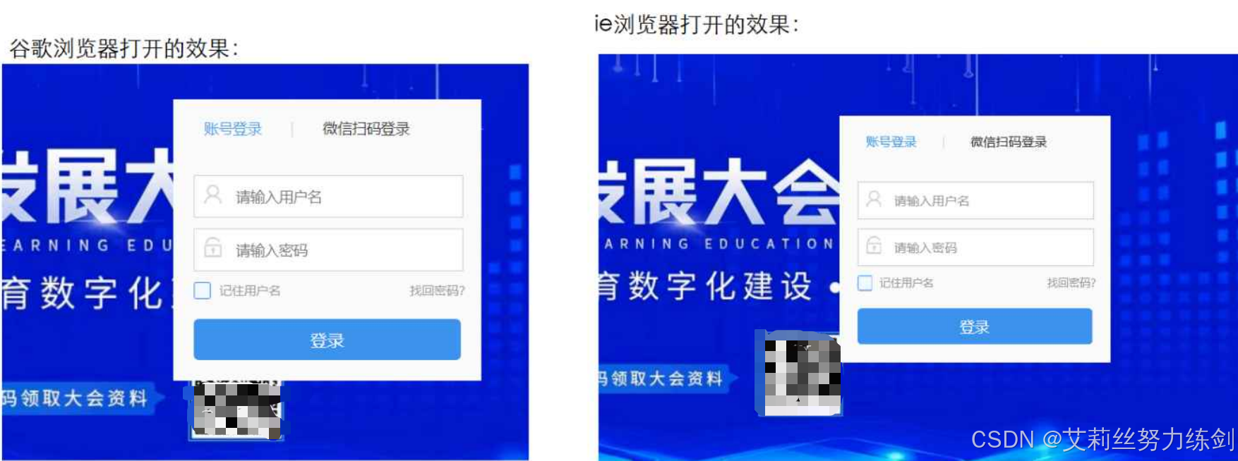 在不同浏览器打开的效果截然不同,如果在谷歌浏览器打开后二维码被遮住了一半——