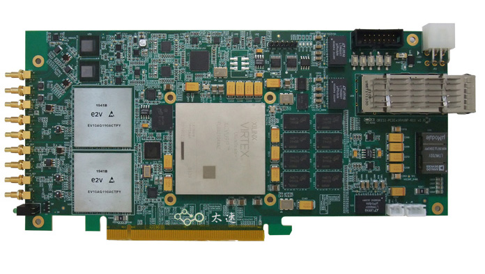 基于XCVU9P的5Gsps AD DA收发PCIe板卡。该板卡要求符合PCIe 3.0标准,包含一片XCVU9P-2FLGA2014I、2组64-bit/8GB DDR4、2路高速AD, 2路高速DA,支持外触发,外时钟。板卡工作温度范围0到60℃,板卡设计加工包含散热装置,支持服务器风冷散热。软件包括接口测试软件,支持甲方应用开发。