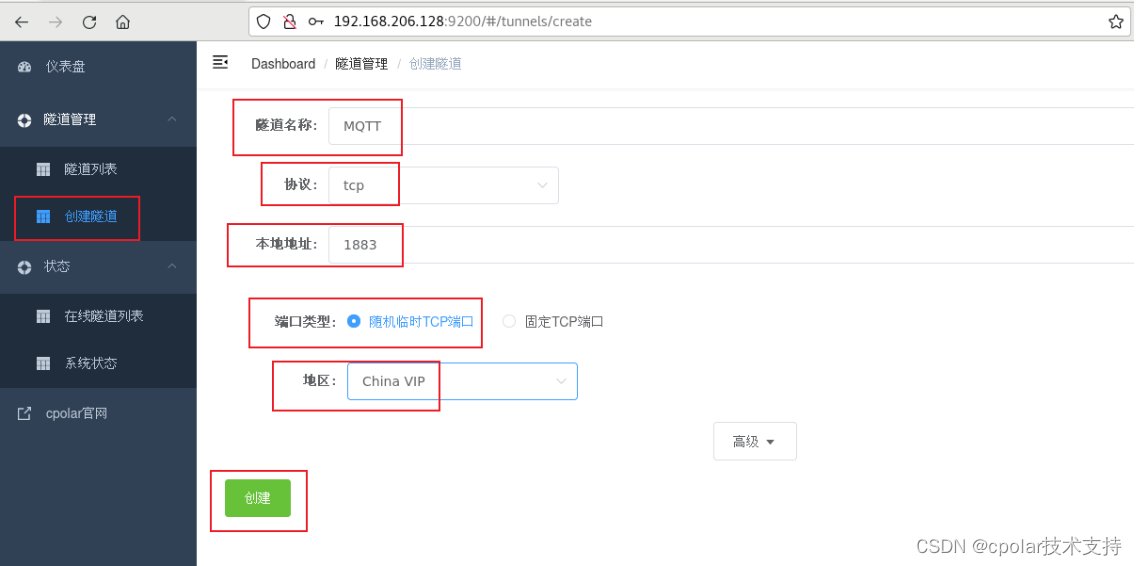 登录cpolar web UI管理界面后,点击左侧仪表盘的隧道管理——创建隧道: