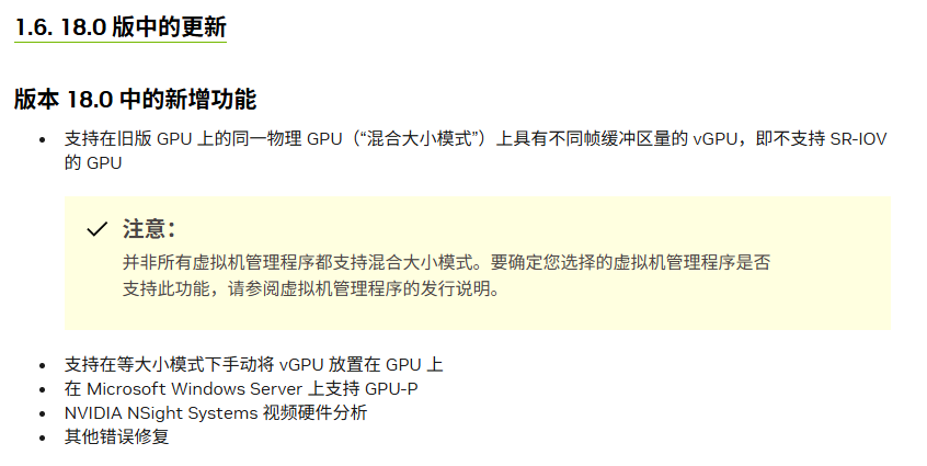 因此在Nvidia vGPU 18.0版本,英伟达开始支持混合大小模式,