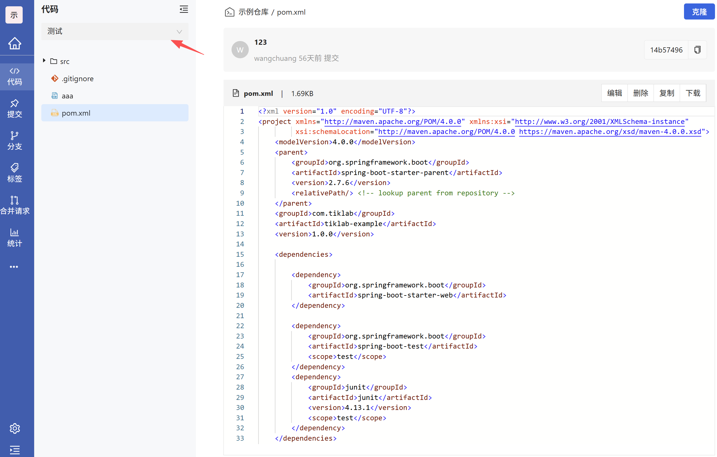 2.查询代码文件内容,点击文件名字,进入文件内容。