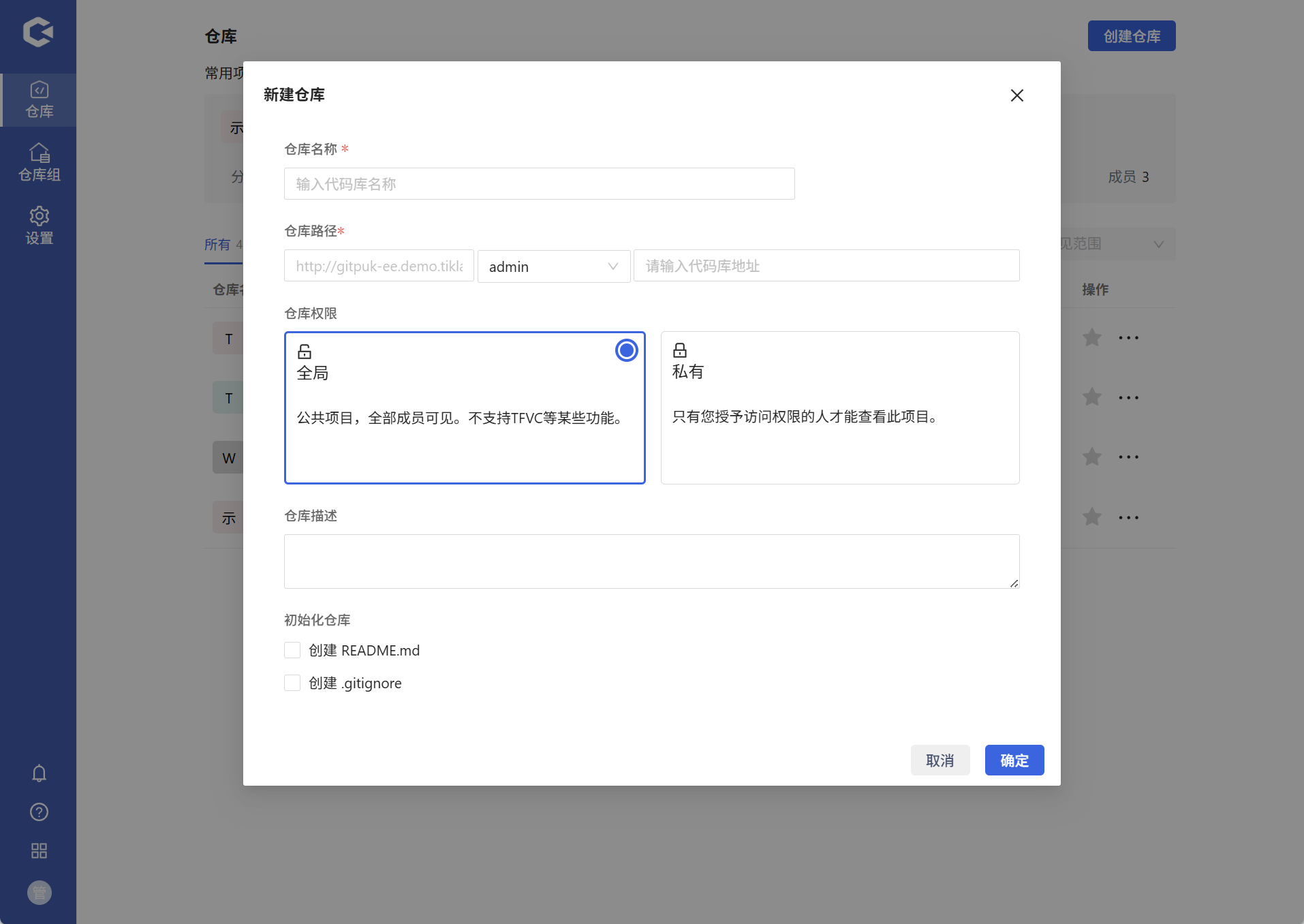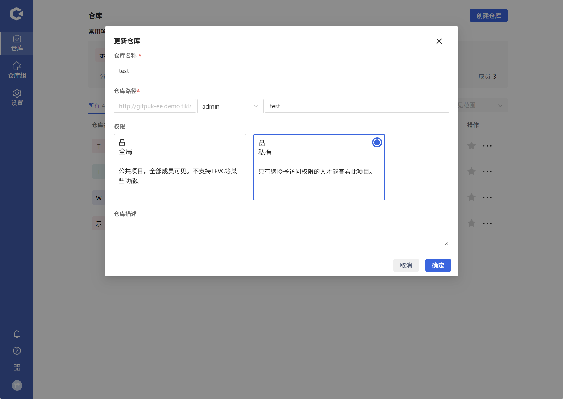 仓库地址 | 是 | 分为仓库组的选择、仓库地址 |