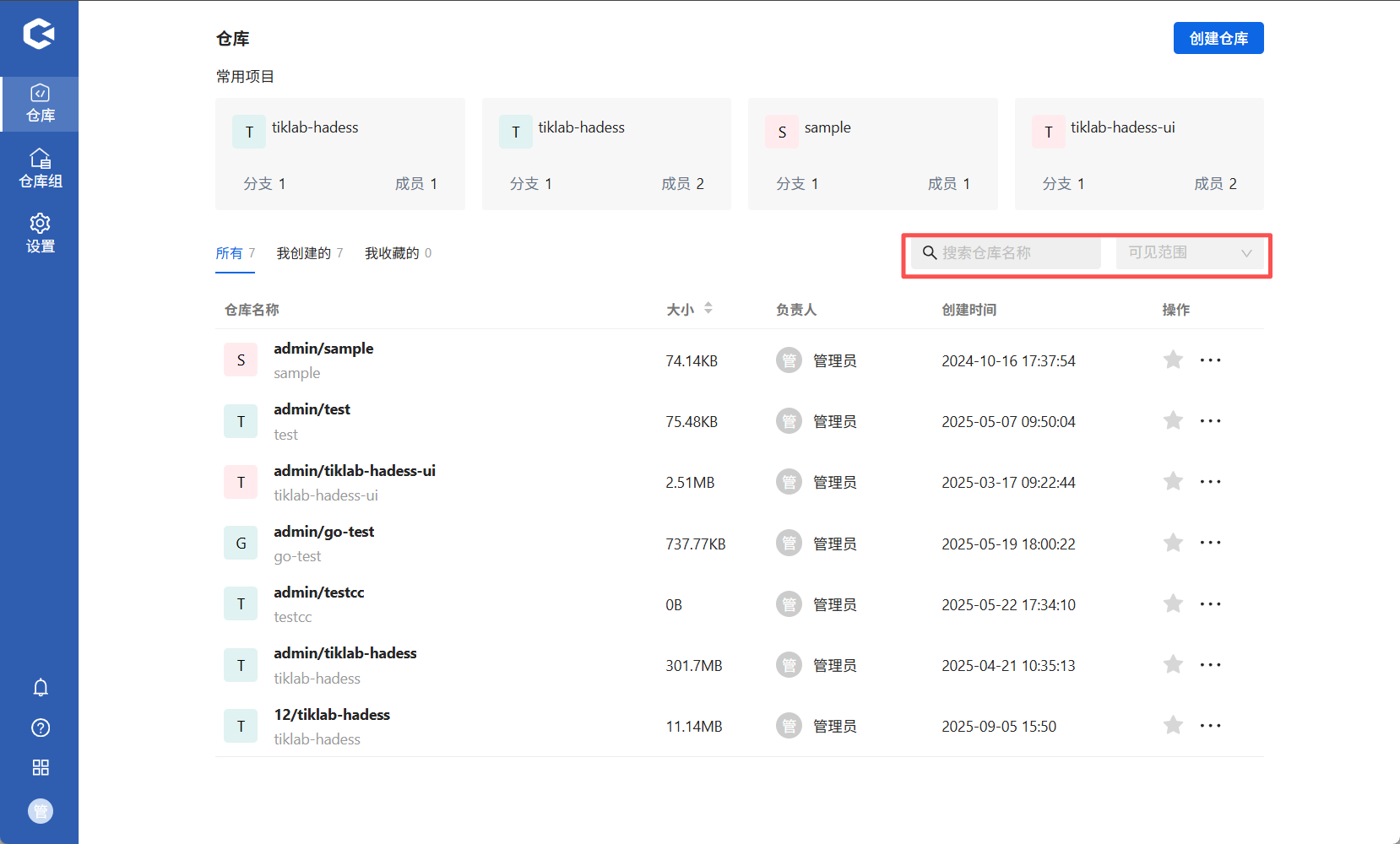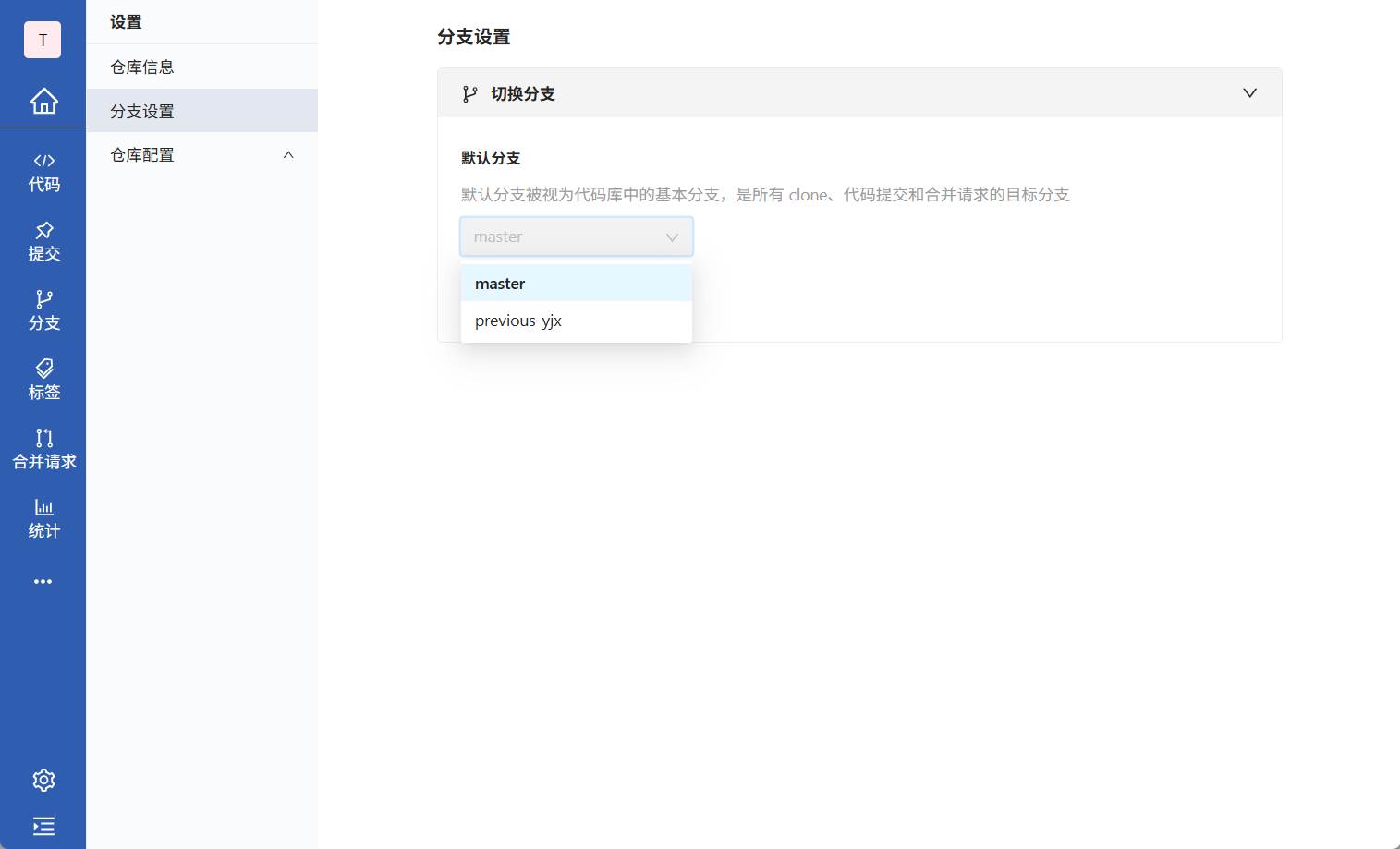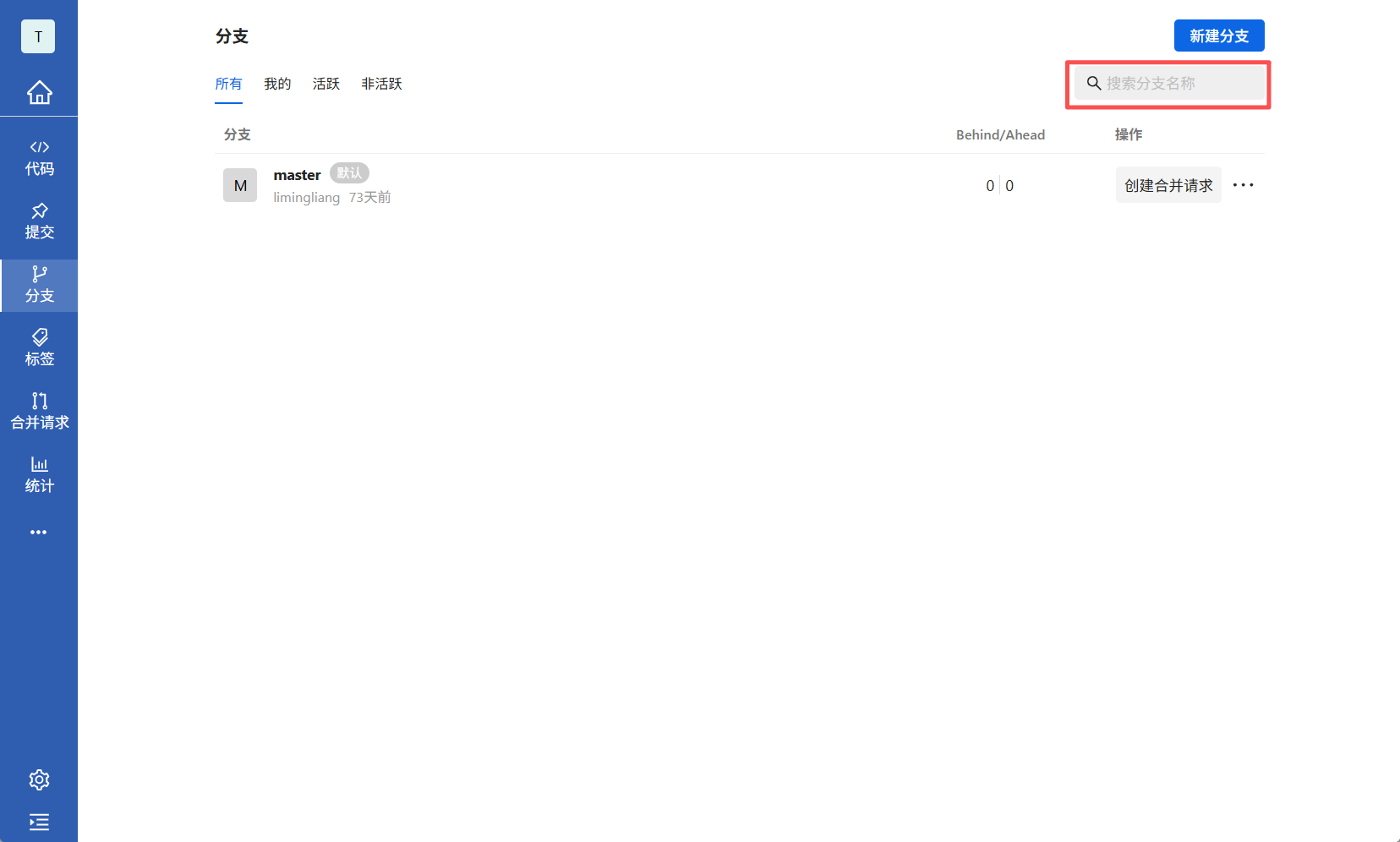 查询提交:点击仓库名字后点击提交tab,可以根据切换分支、切换用户、提交信息模糊查询。