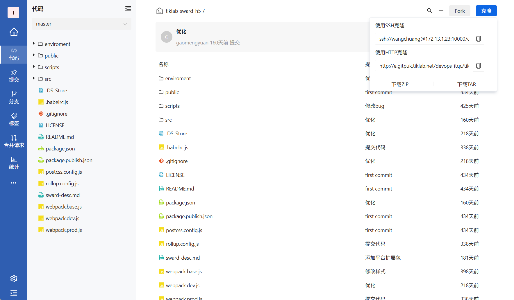 GitPuk除了拉取之外也同样支持下载,可以选择你要的格式进行下载