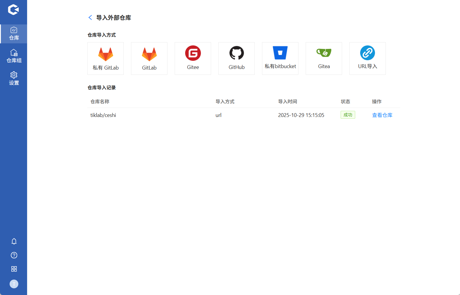 支持GitLab、Gitee、GitHub、bitbucket第三方代码仓库工具的导入。