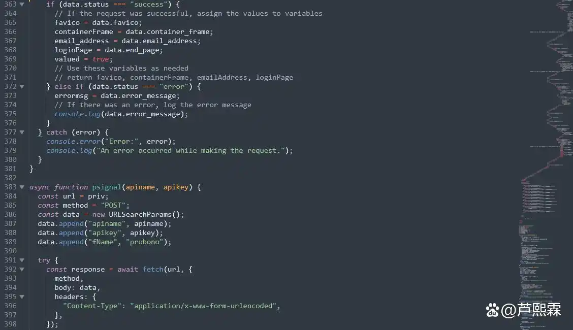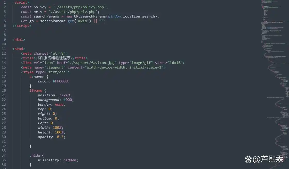功能:通过POST请求向policy.php发送用户邮箱(Base64编码),获取动态配置(favico图标、container_frame的iframe链接、end_page跳转页面)。