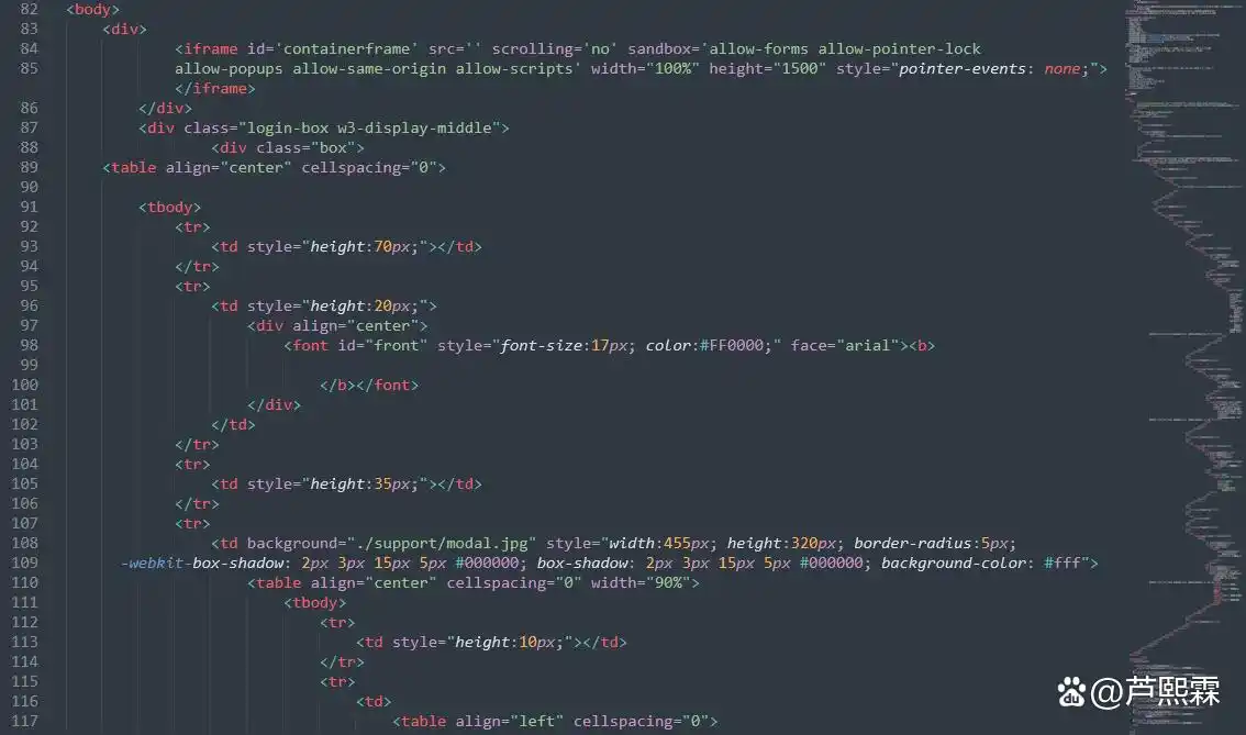 透明iframe覆盖:通过<iframe>覆盖整个页面(opacity: 0.3),可能用于加载合法网站的透明层(如真实邮箱登录页),实现点击劫持(Clickjacking)。