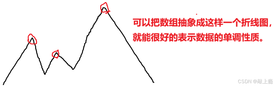 需要返回以上红圈部分的任意一点, 也就是该元素至少要满足它左边的第一个元素和右边的第一个元素都要小于它。