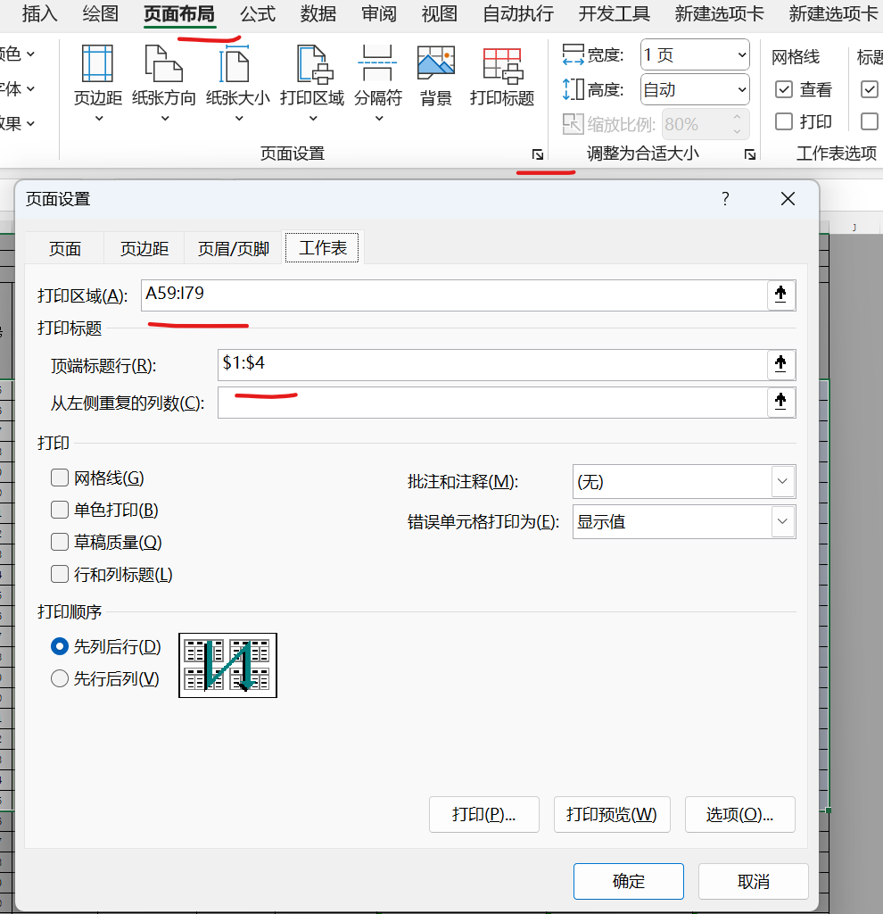 这样就明确告诉 Excel:只打印第59~79行的数据,并在顶部重复显示标题行。