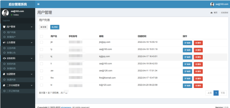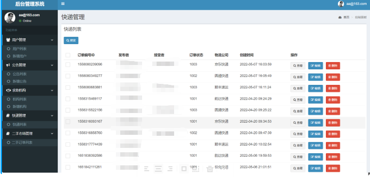 (1)管理员:系统管理员负责维护网站正常秩序。管理员在登录后,贵管理用户信息、快递信息、管理求助机构、公告信息和二手市场。