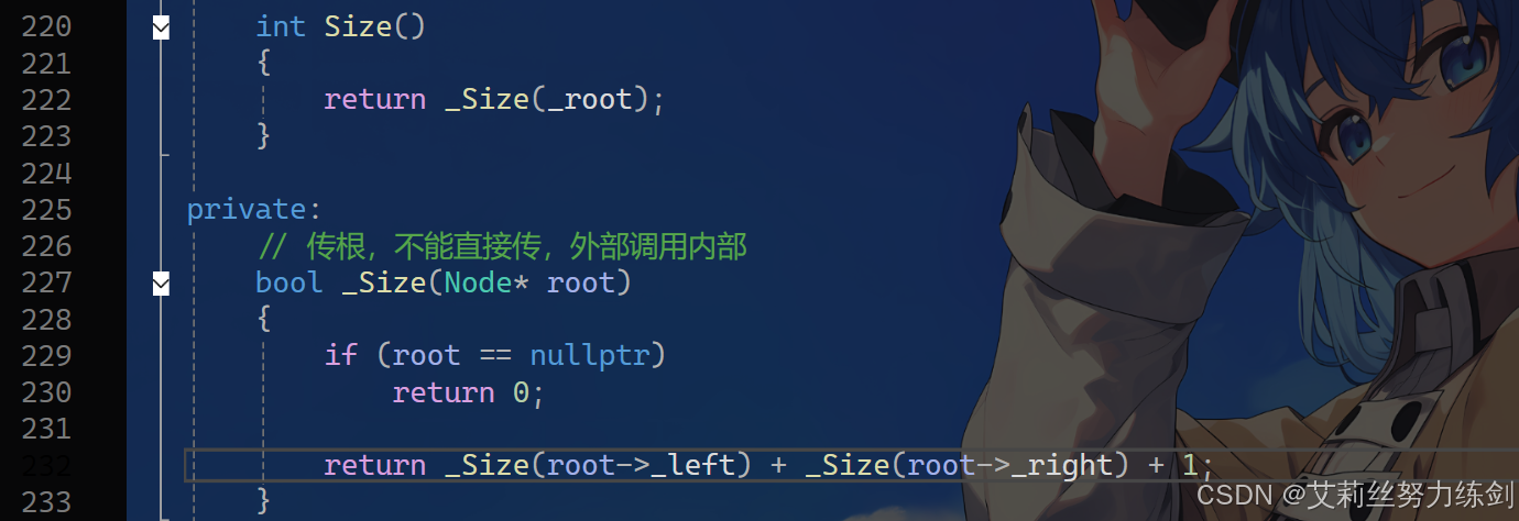 return _Size(root->_left) + _Size(root->_right) + 1; // 递归调用