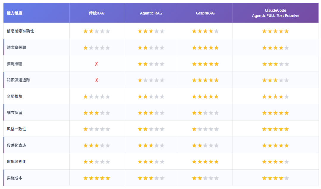 - ❌ 没有向量检索(不需要embedding、向量数据库)