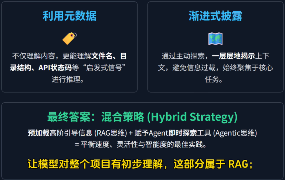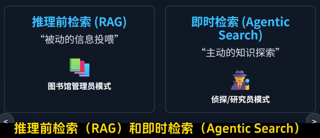 注:图片来源于B站up主:慢学AI的视频,名称为超越RAG的agentic search :从“被动投喂”到“主动探索”-Anthropic《AI Agent的高效上下文工程》,大家可以到B站搜索这个视频的详细讲解。