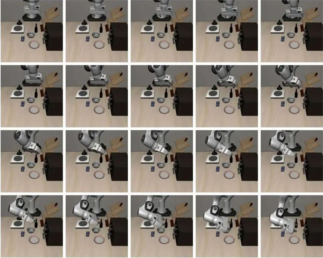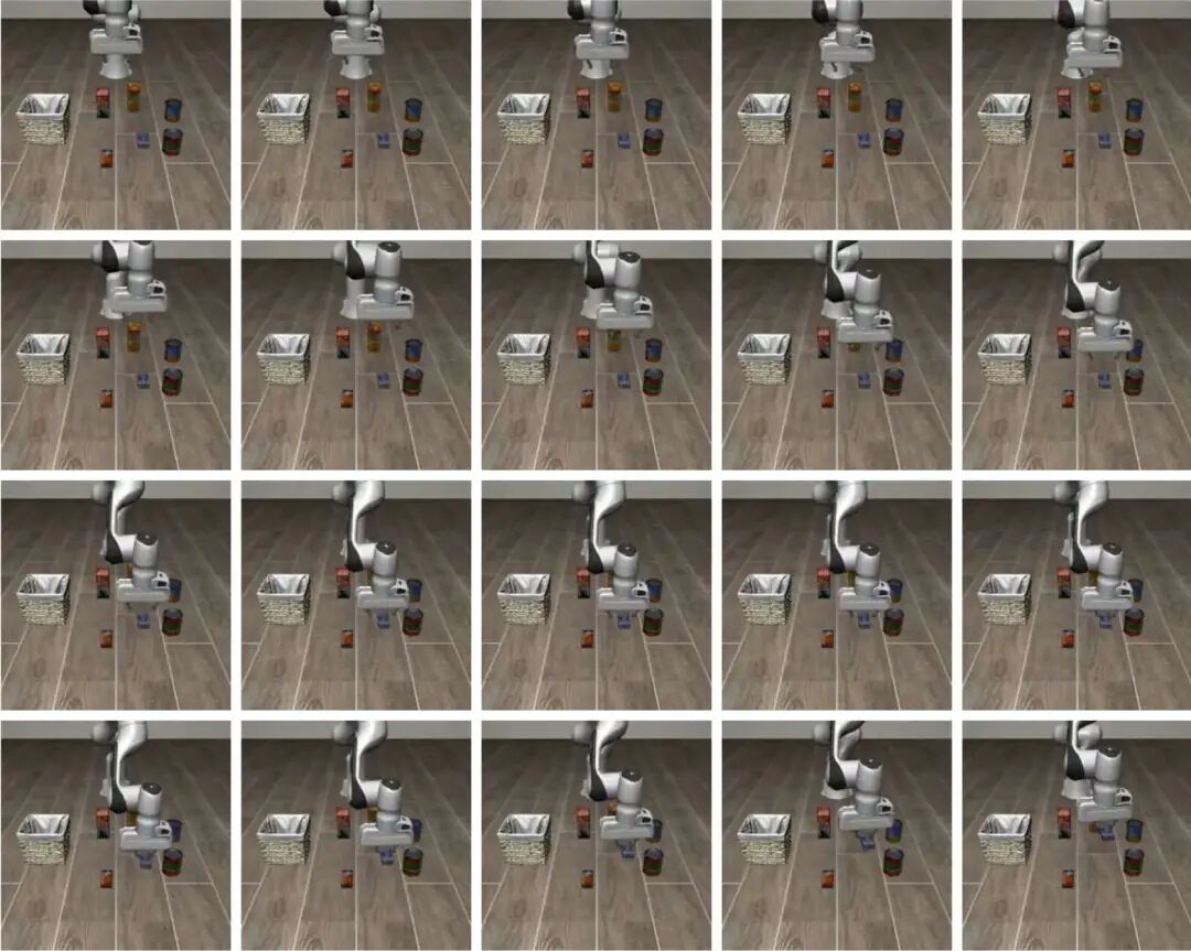 本文方法在所有四个套件上联合训练单一模型,同时引入来自 GR00T 数据集的最多 6 个异质辅助任务(基于带抓手的 Panda 机器人)。GR00T 是一个包含不同机器人和任务类型的仿真数据集。