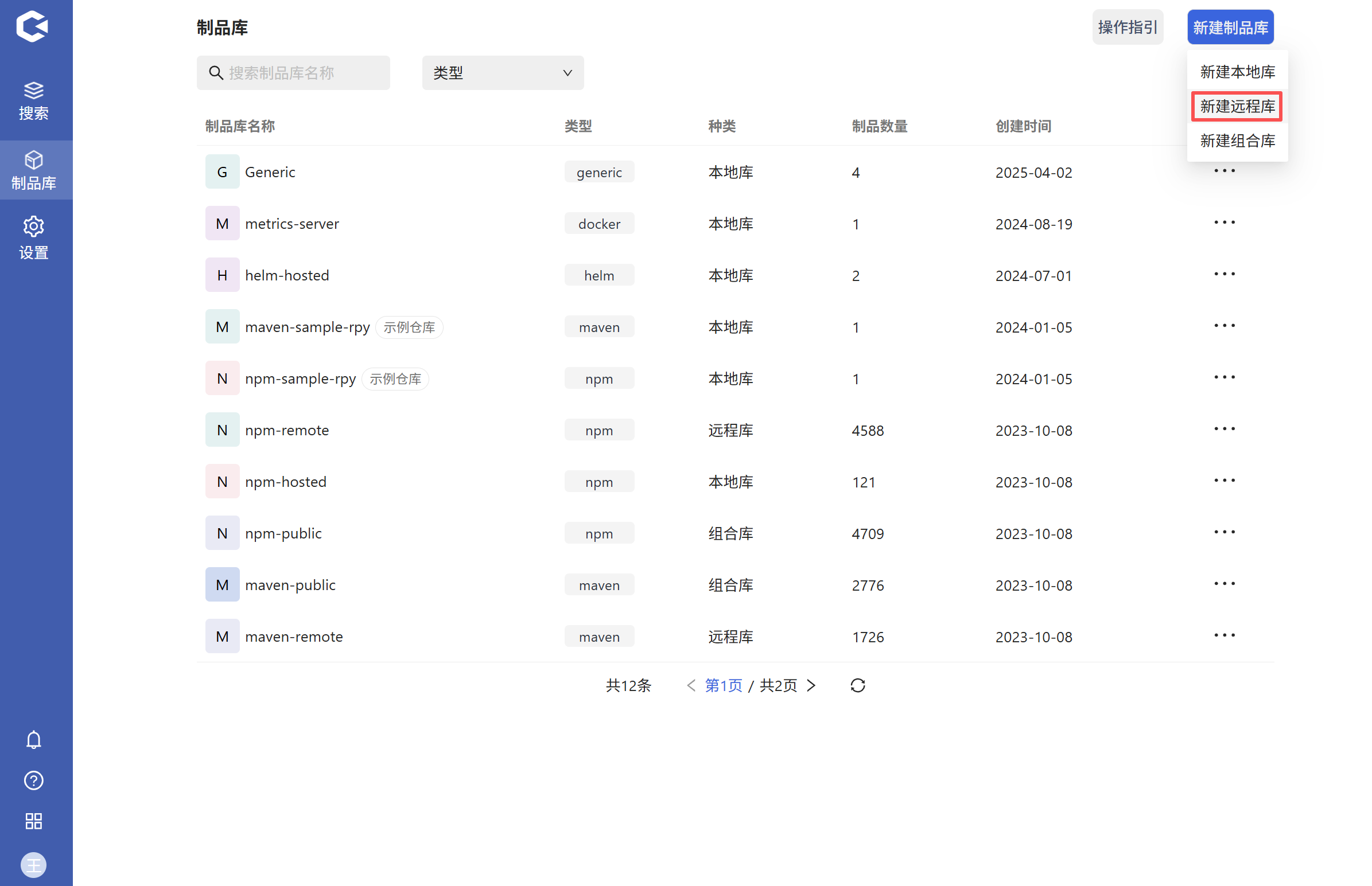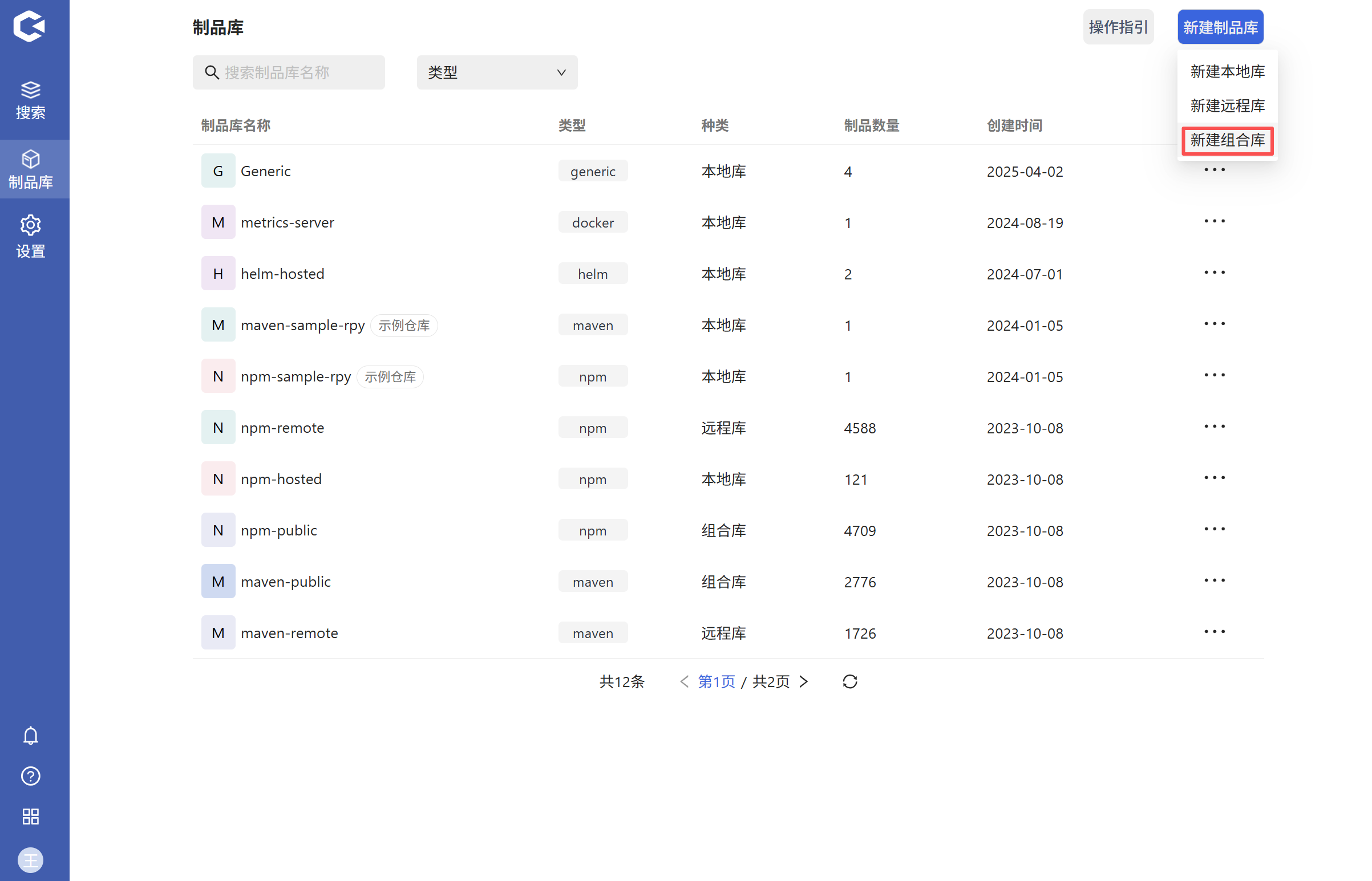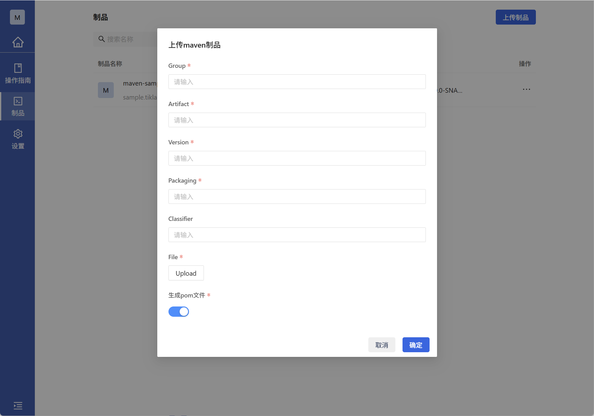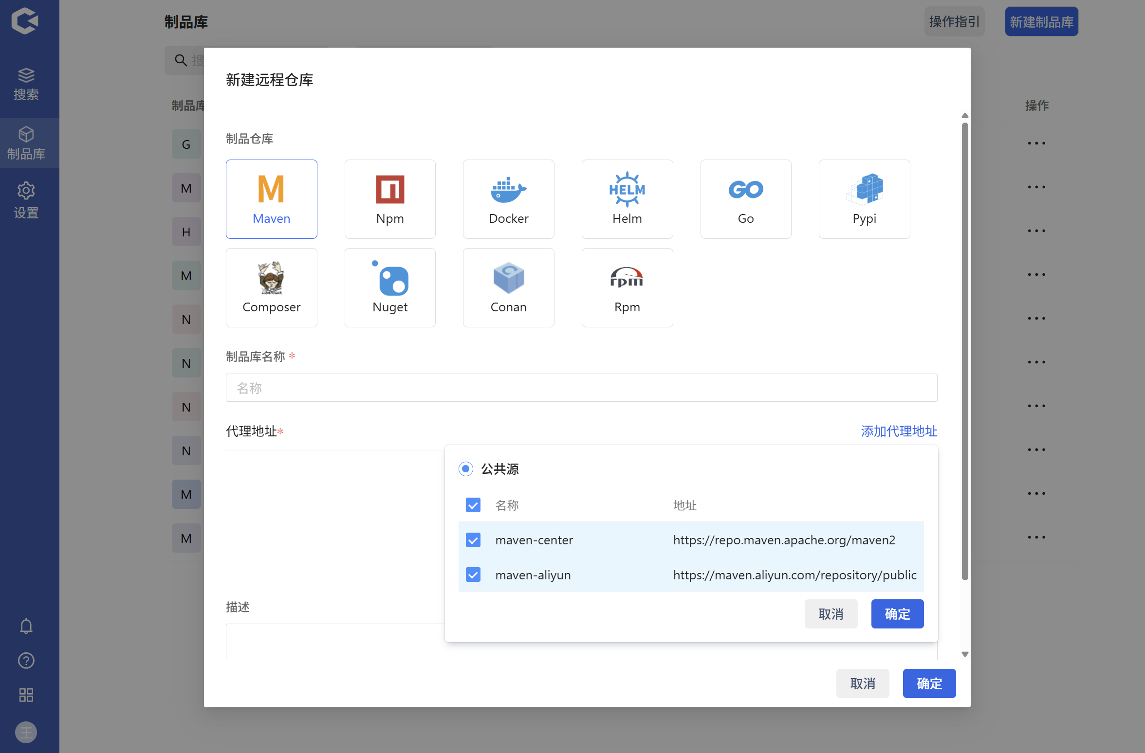 制品仓库 | 是 | 制品库类型,默认为Maven |