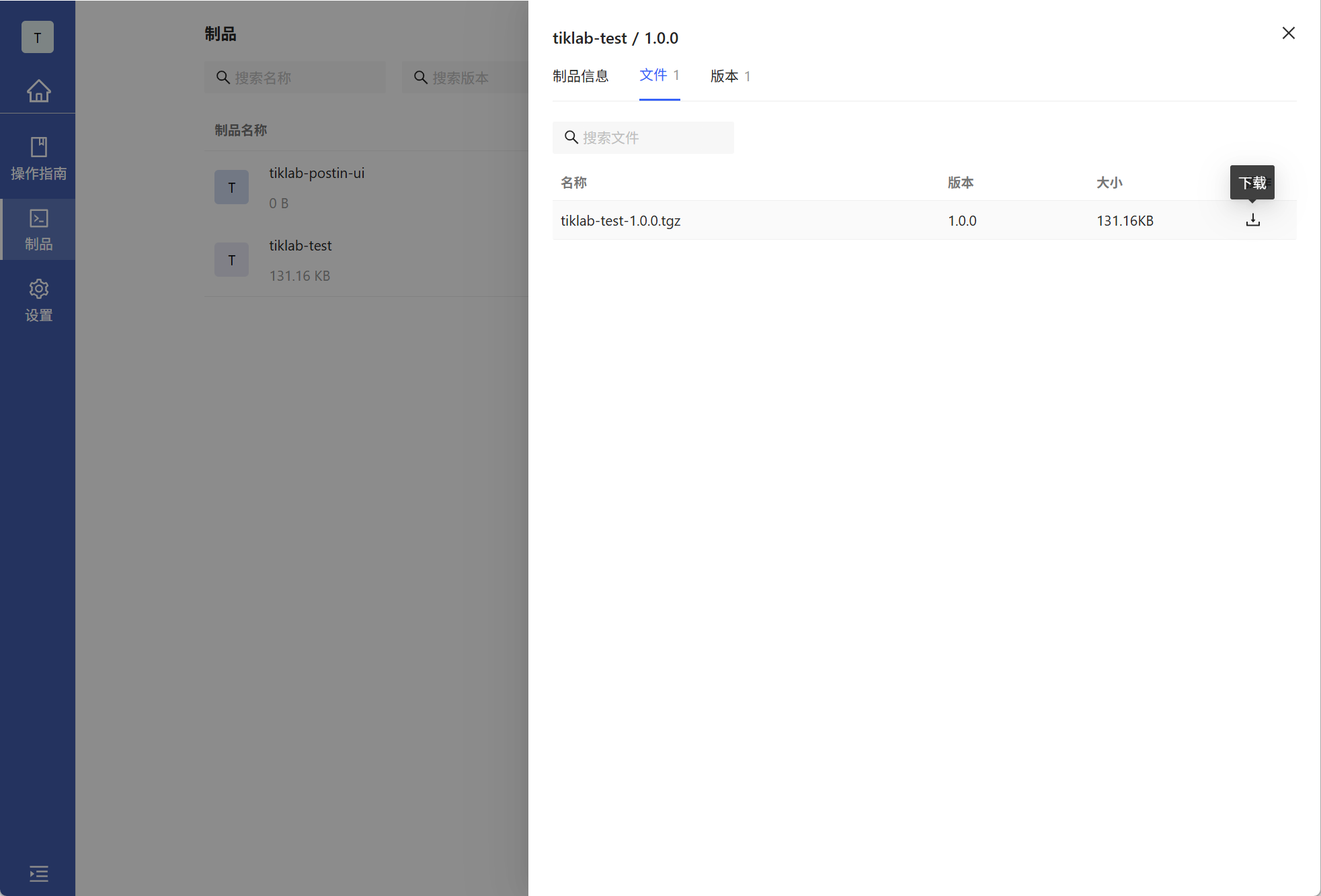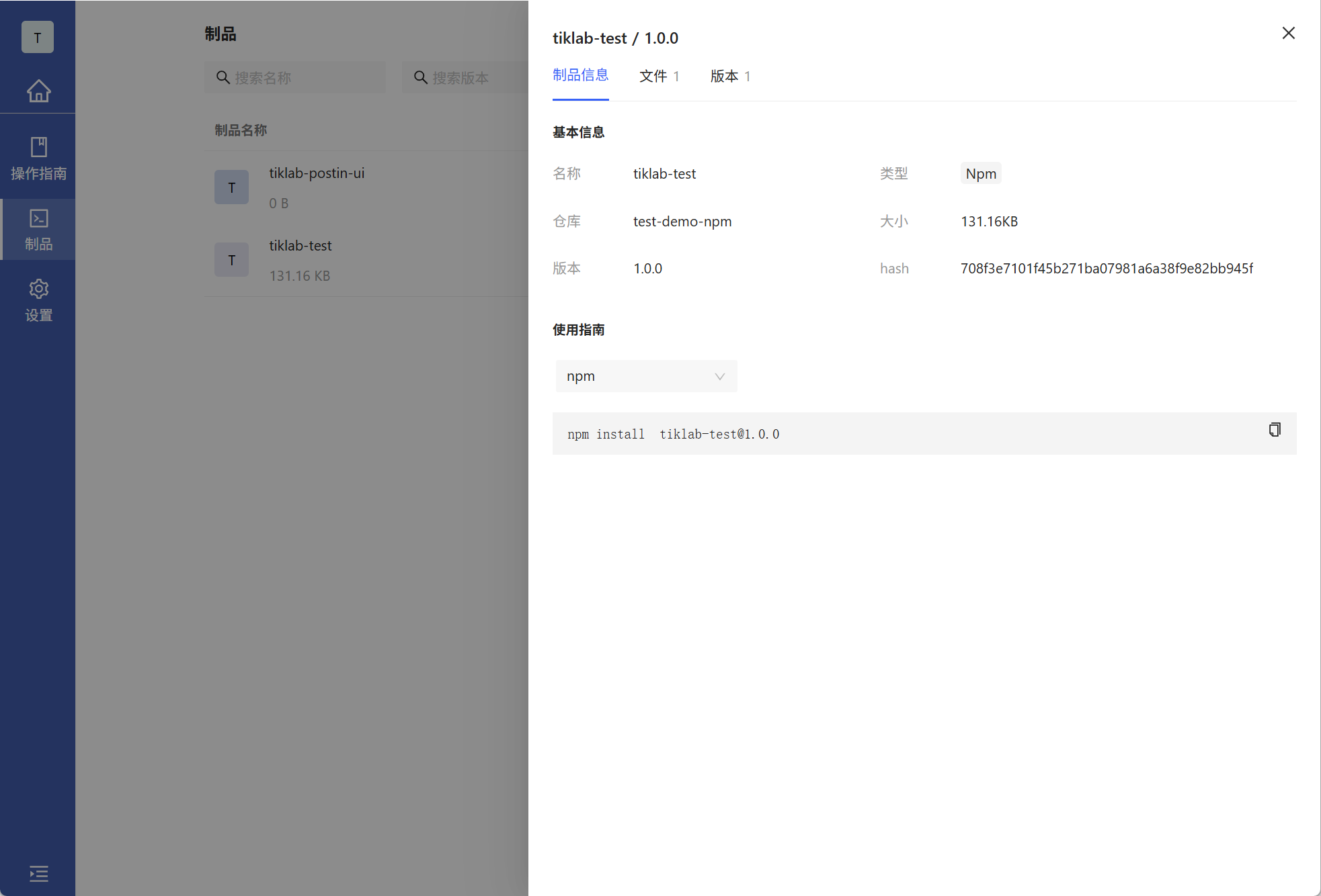 点击版本tab 查看该制品的历史版本
