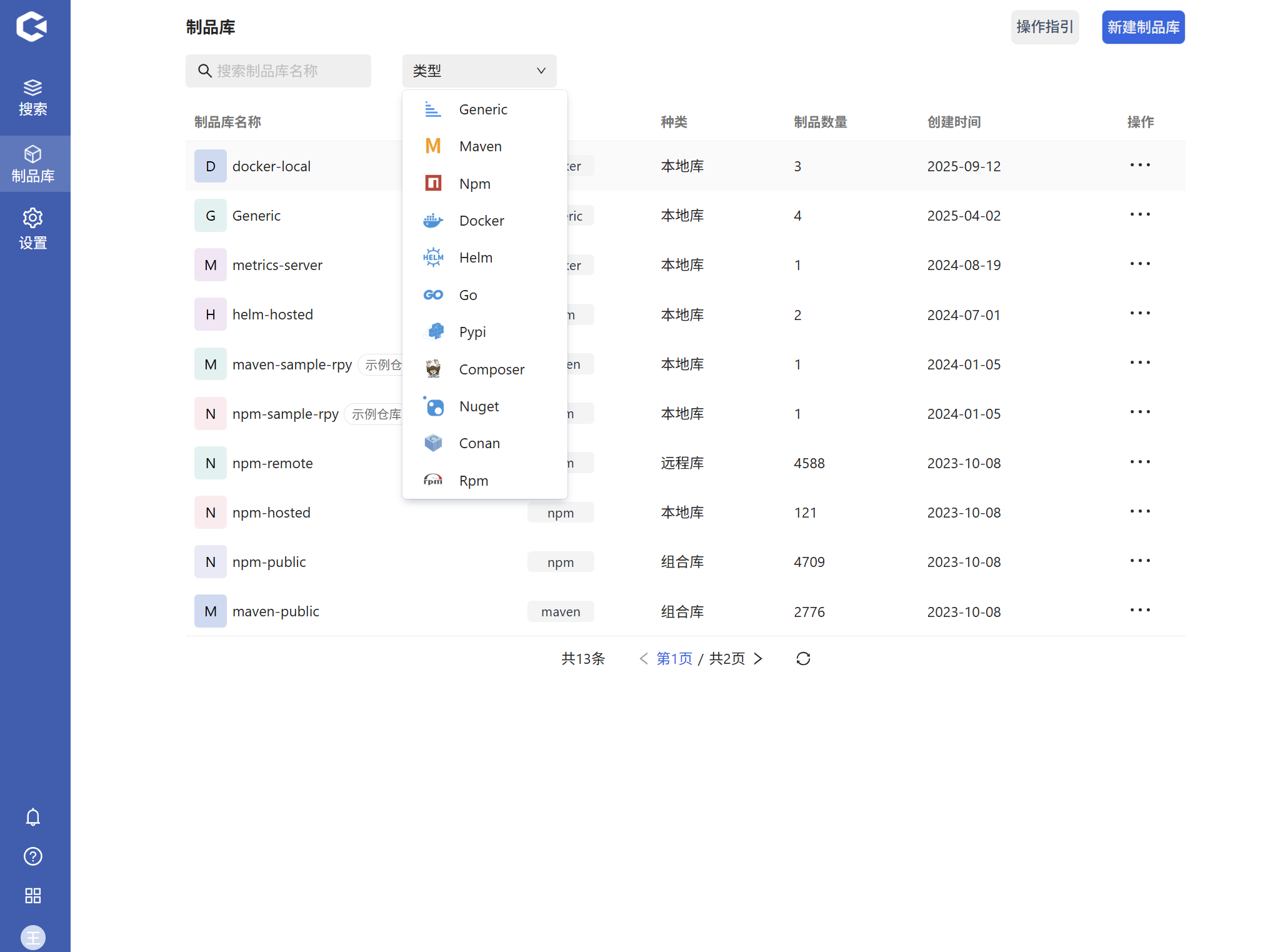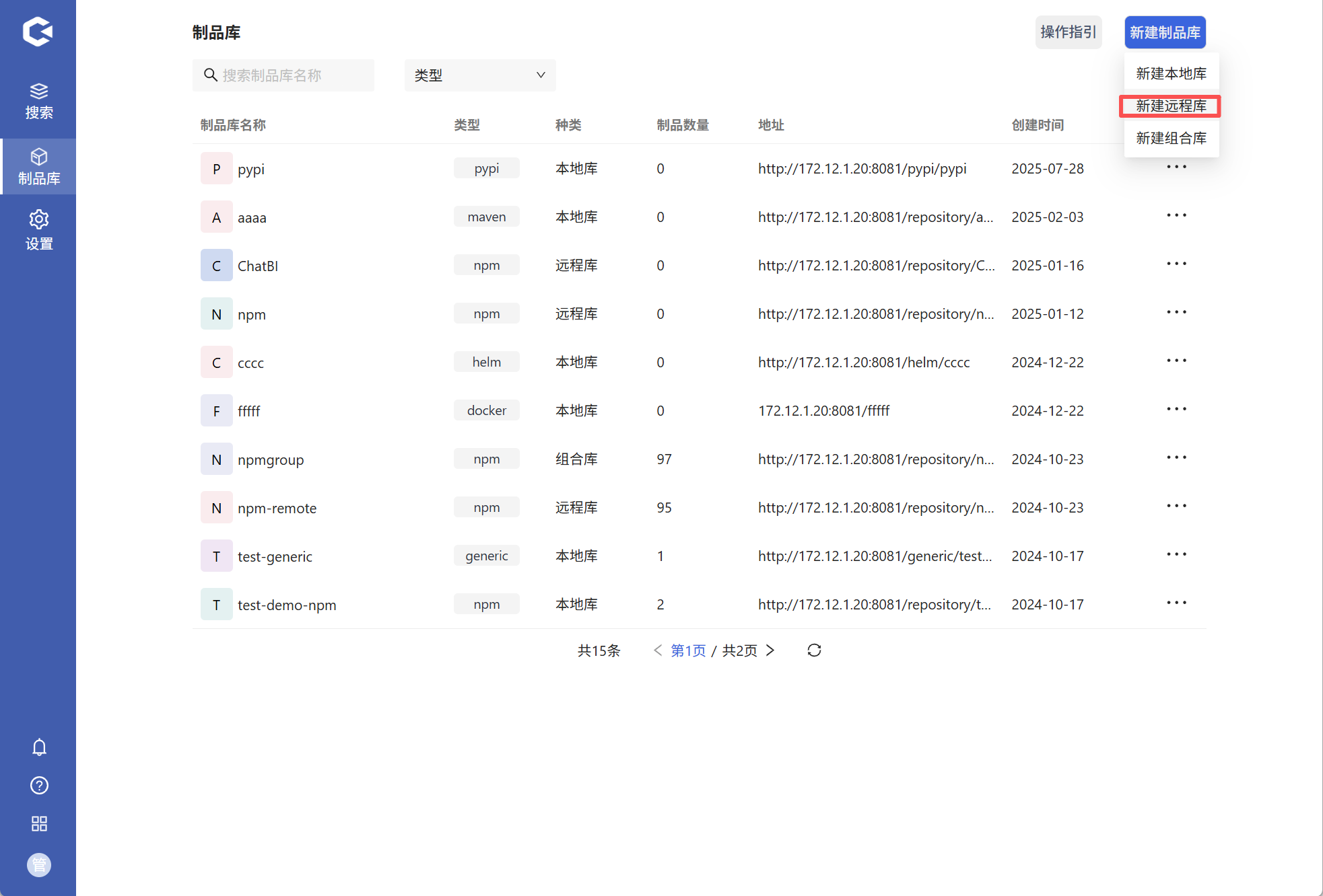 进入Hadess后点击制品库,可直接在上面选择制品类型或直接在搜索框输入制品库名称进行查询