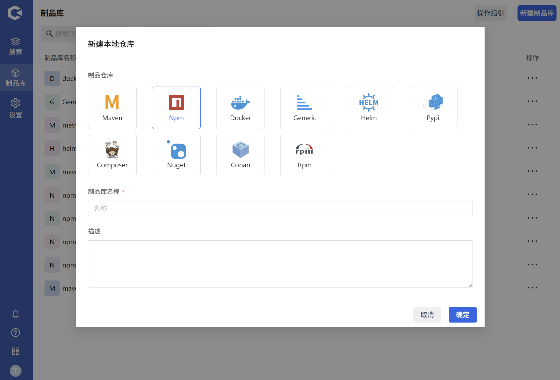 制品组合 | Npm制品的组名 |