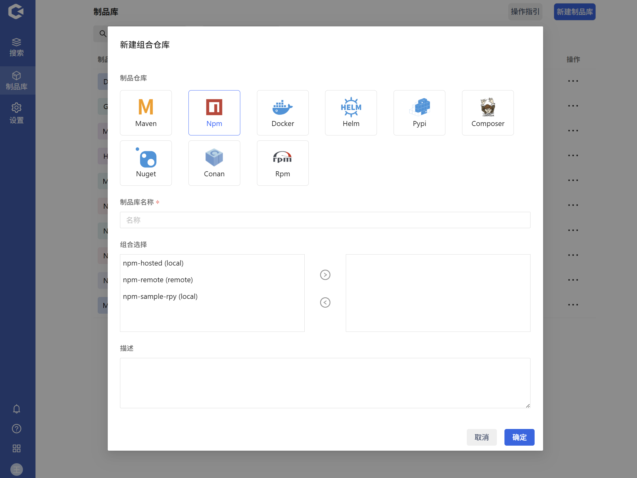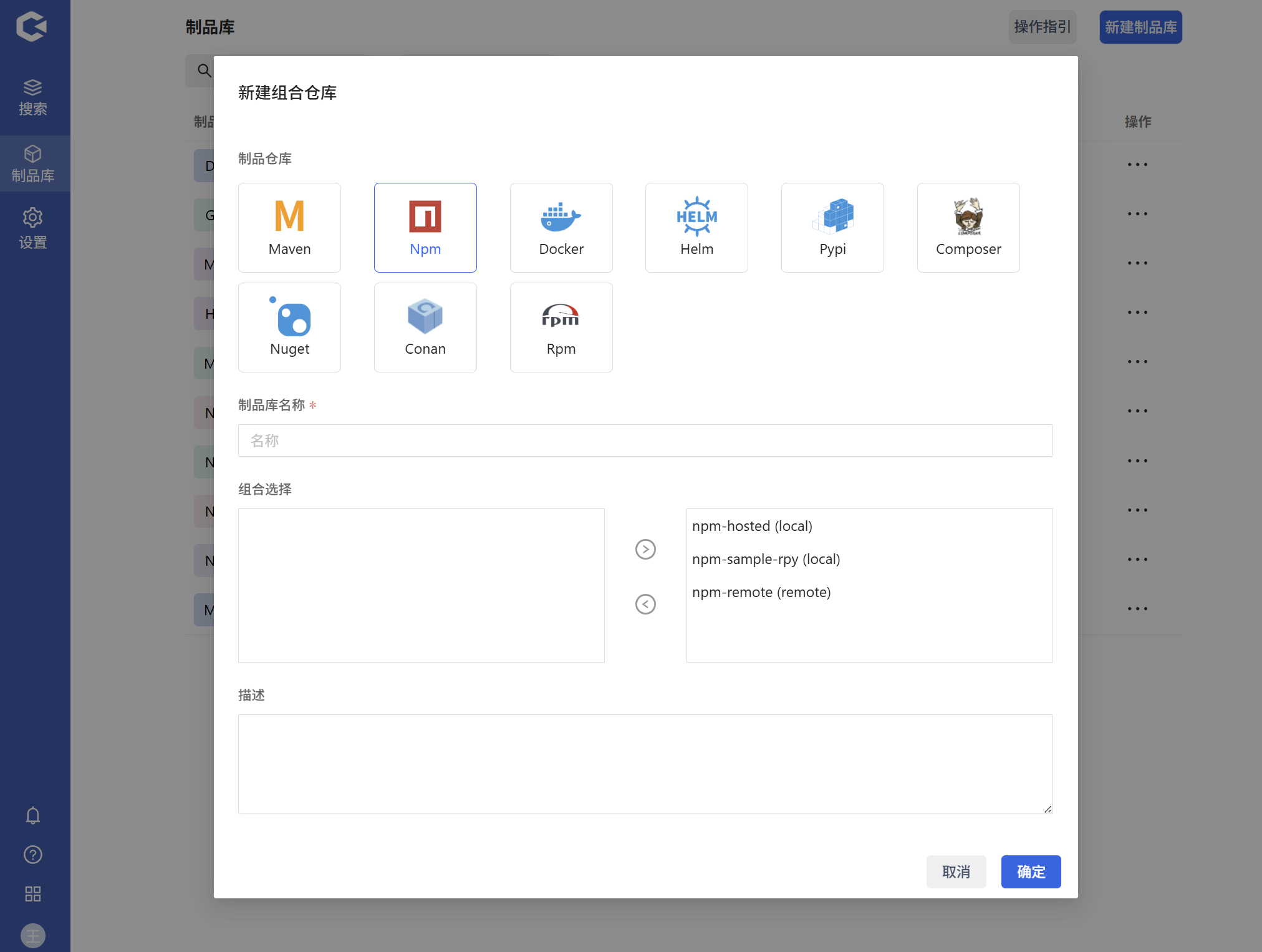 组合选择 | 是 | 关联同类型的本地或者远程库,最佳搭配:一个本地库和一个远程库 |