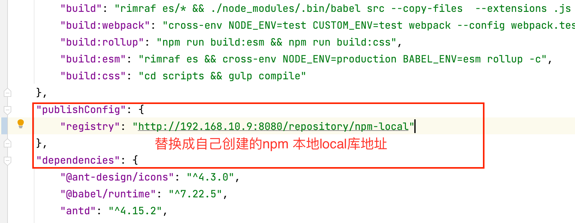 配置项目package.json:在项目package.json 中配置推送地址