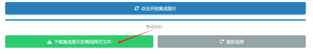 如果图片文件不多,可以选择高质量集成,如果图片很多,建议降低质量与大小。显示“集成完成”后,就可以下载集成后的离线网页: