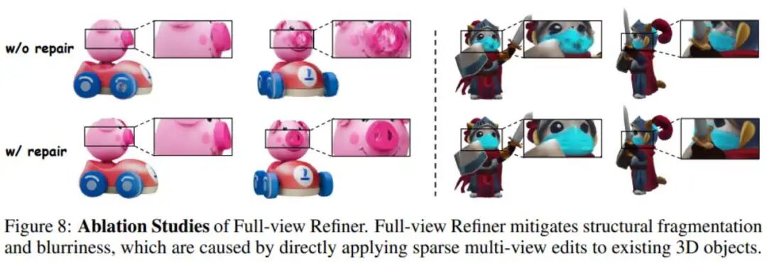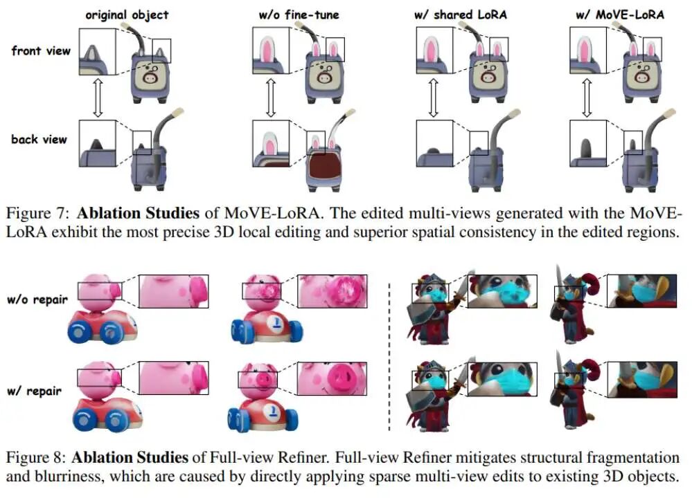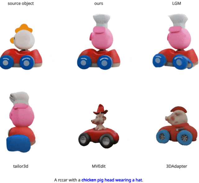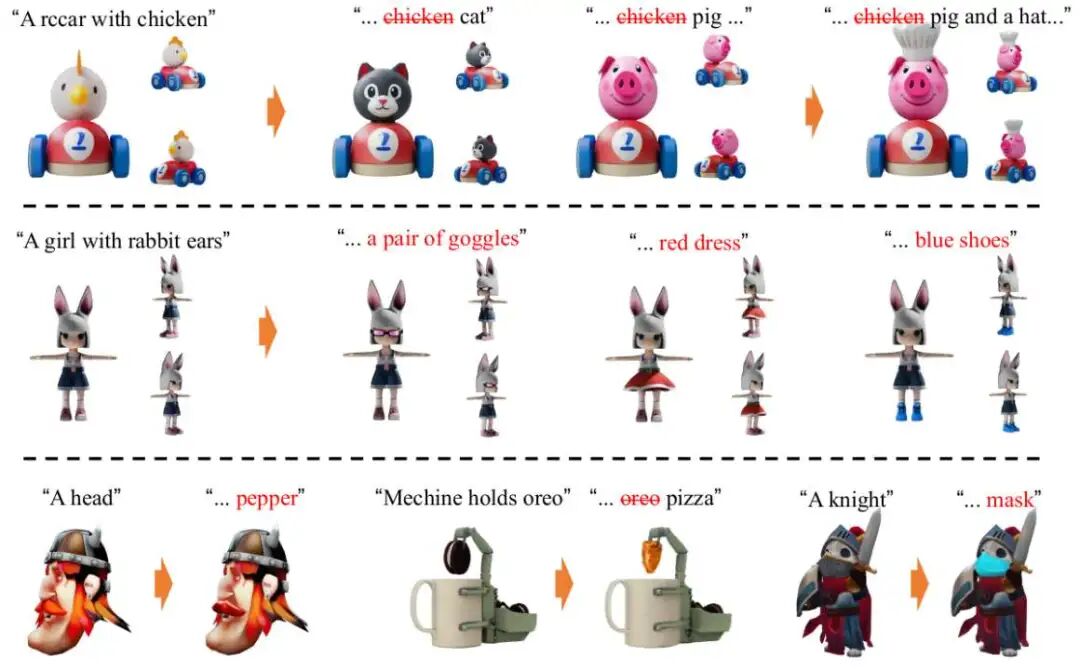 - 在3D物体编辑任务上实现了局部编辑的效果,并不局限在3D物体全局编辑的形式上。