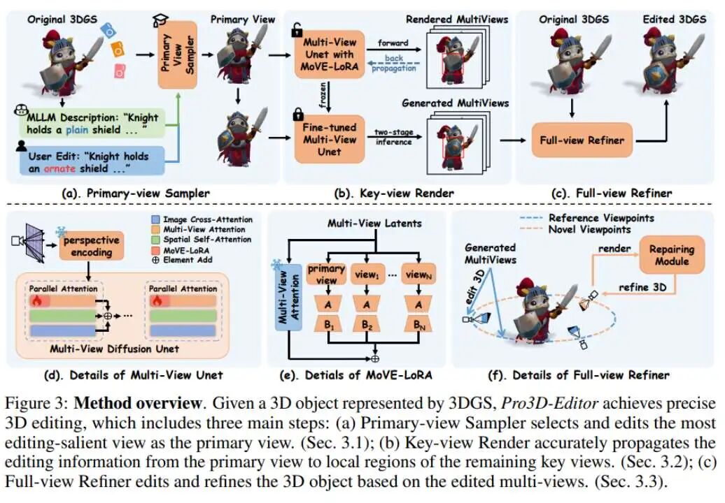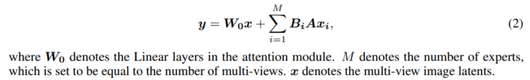 - 根据Multi-view Diffusion model(I2MV)结构而精心设计了LoRA变体(MoVE-LoRA),通过原物体的渲染多视图对MoVE-LoRA进行微调,实现了多视图之间的一致性的编辑。